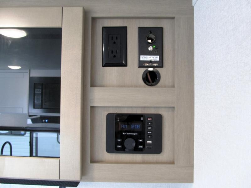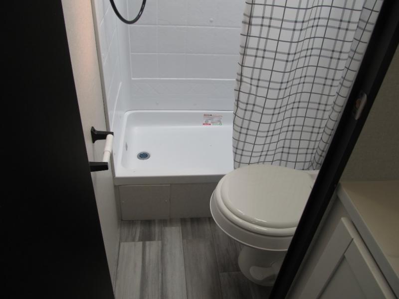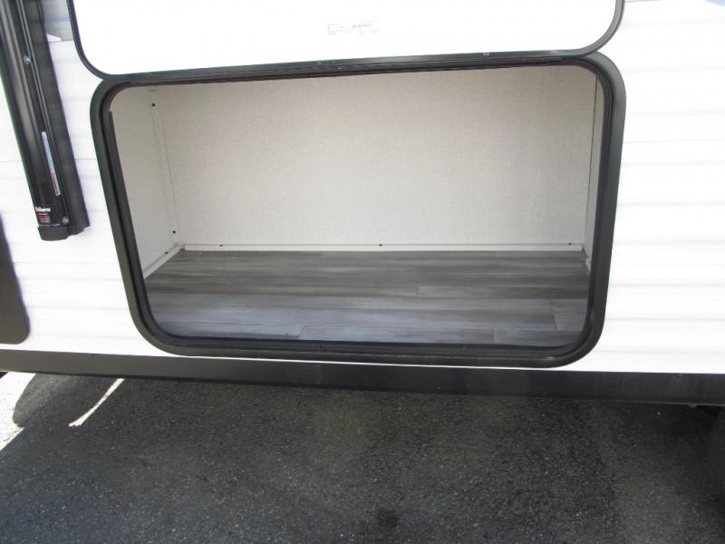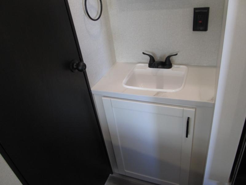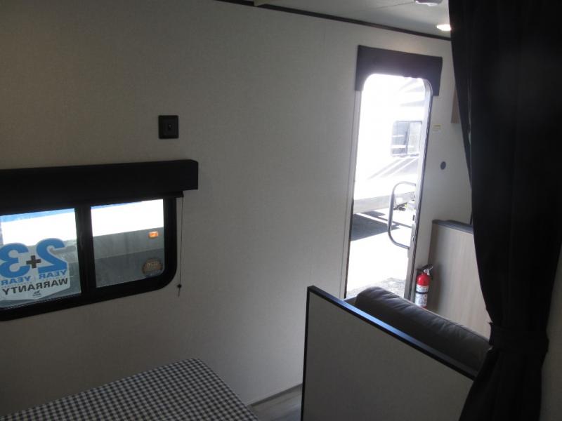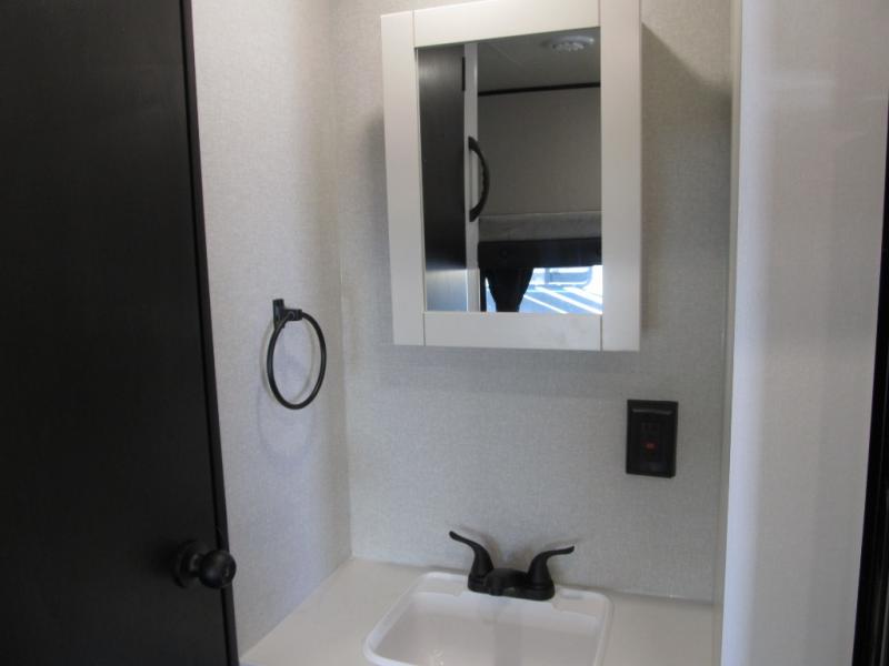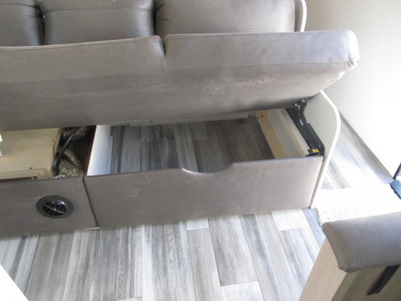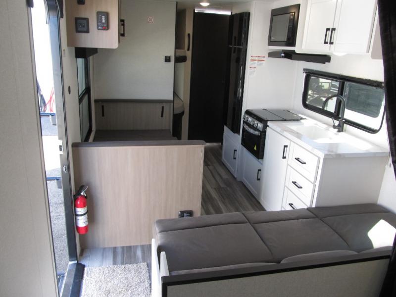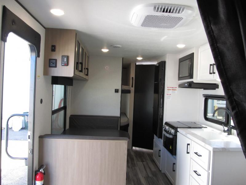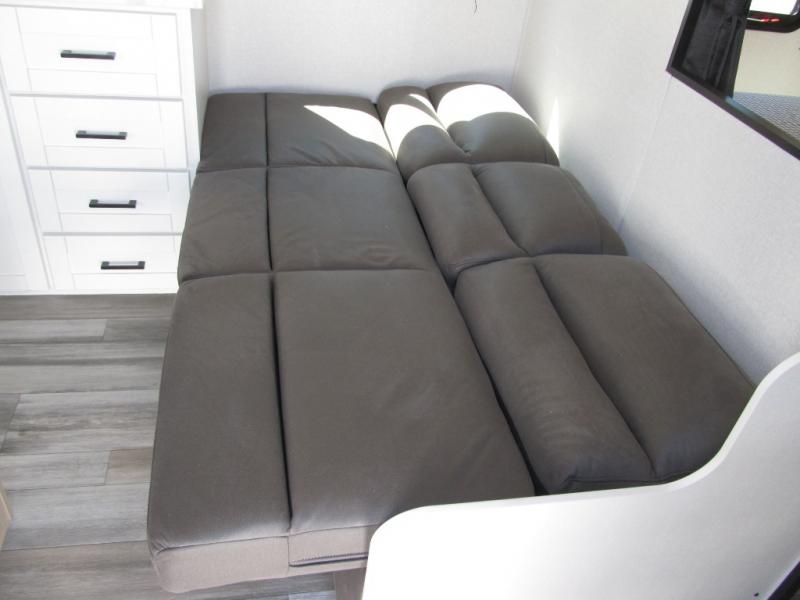 You can comfortably sleep eight to ten people in this trailer thanks to the double-size bunks, the RV queen bed in the front bedroom, plus the booth dinette and jack-knife sofa in the main living area! The chef of your crew will have a three burner cooktop and microwave oven to prepare meals, and everyone can store their favorite drinks in the 8 cu. ft. 12V refrigerator. The bathroom includes a shower and a toilet, with the sink just outside of this room so others can brush their teeth if one is taking a shower before bed. The outside storage will let you bring along fishing poles and the 16' power awning with LED lights will create a nice place to gather in the evenings!