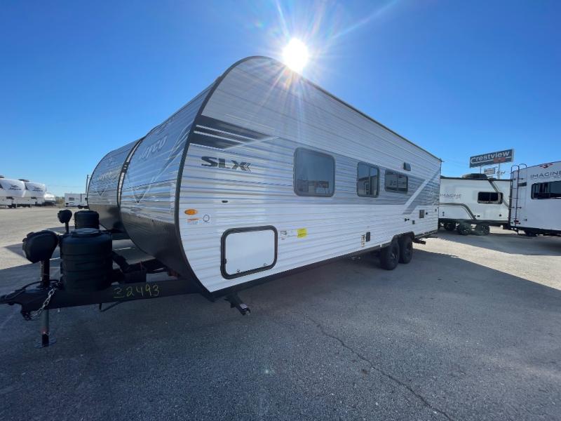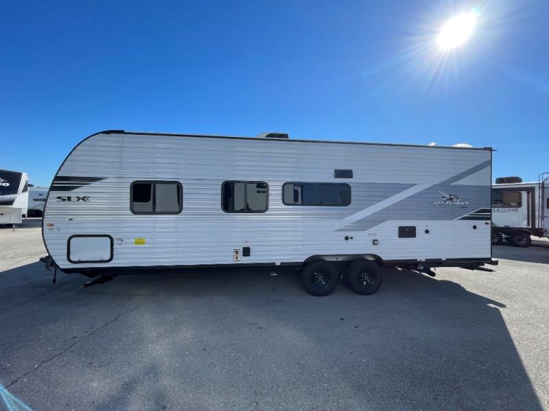 The Jayco Jay Flight SLX travel trailer is quite easy to own because it is lightweight for an easier towing experience. Built on a fully integrated A-frame with galvanized-steel, impact-resistant wheel wells, the Jay Flight SLX has quality at its very foundation. That quality continues on to the electric self-adjusting brakes, easy-lube hubs, Magnum Truss roof system, and LP quick connect. Some of what the mandatory Customer Value Package includes is backup camera prep, Keyed-Alike entry and baggage doors, and an on-demand tankless water heater.
