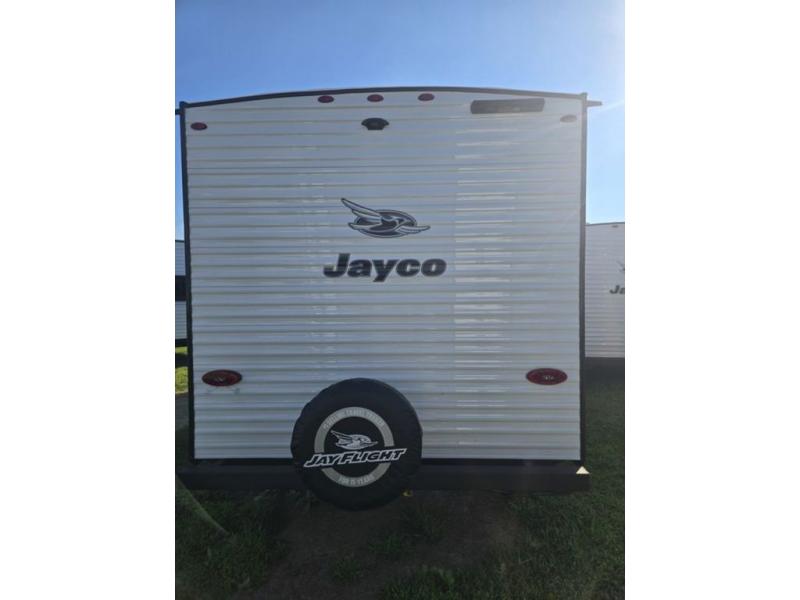 The Jayco Jay Flight SLX travel trailer is quite easy to own because it is lightweight for an easier towing experience. Built on a fully integrated A-frame with galvanized-steel, impact-resistant wheel wells, the Jay Flight SLX has quality at its very foundation. That quality continues on to the electric self-adjusting brakes, easy-lube hubs, Magnum Truss roof system, and LP quick connect. Some of what the mandatory Customer Value Package includes is backup camera prep, Keyed-Alike entry and baggage doors, and an on-demand tankless water heater.
