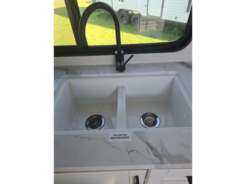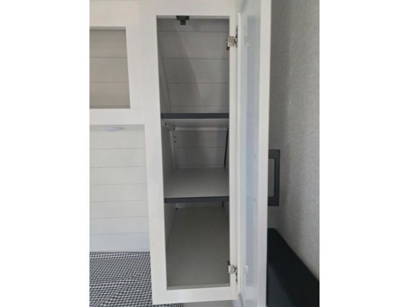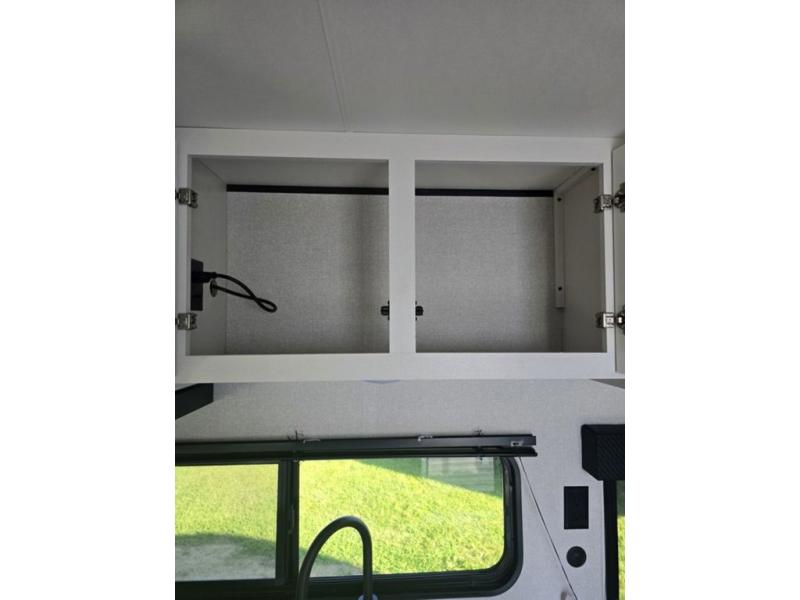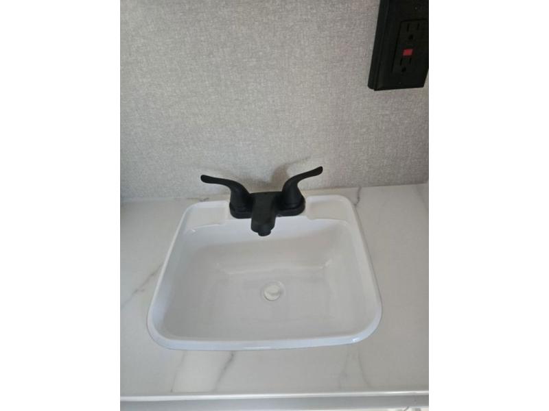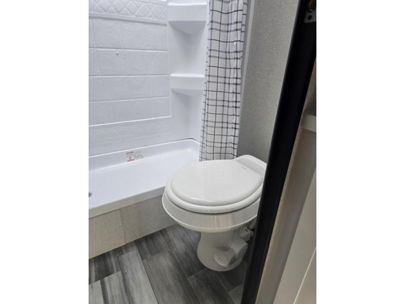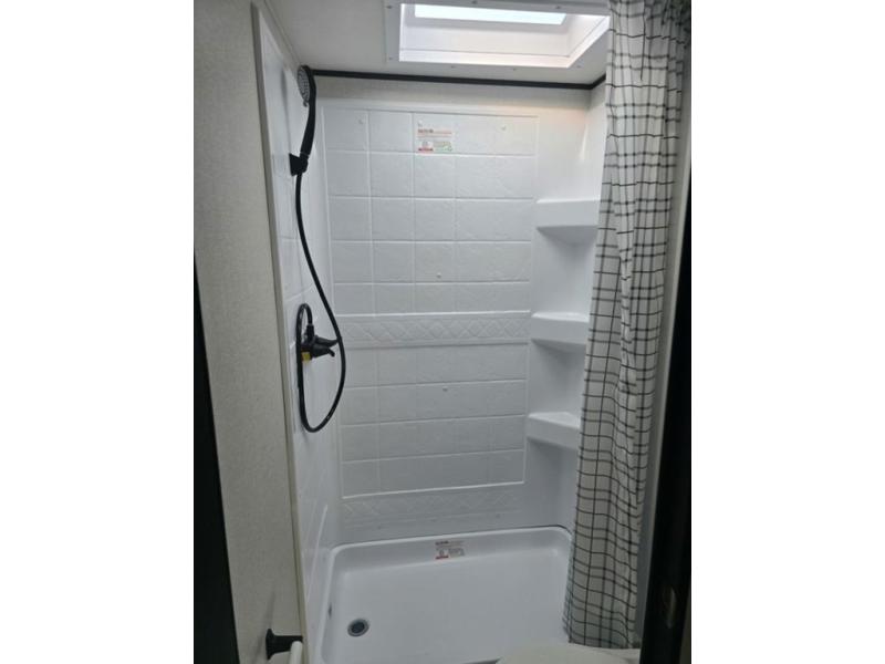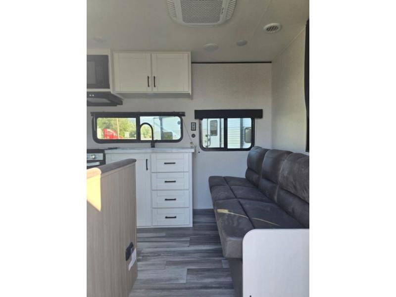 You can comfortably sleep eight to ten people in this trailer thanks to the double-size bunks, the RV queen bed in the front bedroom, plus the booth dinette and jack-knife sofa in the main living area! The chef of your crew will have a three burner cooktop and microwave oven to prepare meals, and everyone can store their favorite drinks in the 8 cu. ft. 12V refrigerator. The bathroom includes a shower and a toilet, with the sink just outside of this room so others can brush their teeth if one is taking a shower before bed. The outside storage will let you bring along fishing poles and the 16' power awning with LED lights will create a nice place to gather in the evenings!
