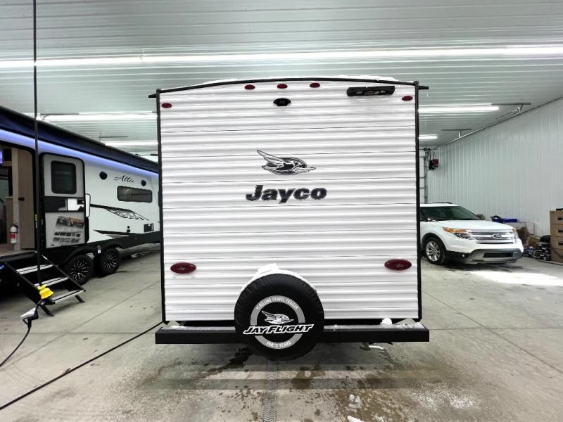 The Jayco Jay Flight SLX travel trailer is quite easy to own because it is lightweight for an easier towing experience. Built on a fully integrated A-frame with galvanized-steel, impact-resistant wheel wells, the Jay Flight SLX has quality at its very foundation. That quality continues on to the electric self-adjusting brakes, easy-lube hubs, Magnum Truss roof system, and LP quick connect. Some of what the mandatory Customer Value Package includes is backup camera prep, Keyed-Alike entry and baggage doors, and an on-demand tankless water heater.