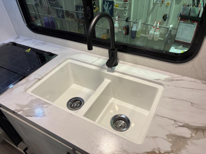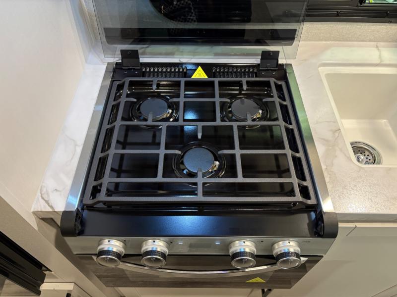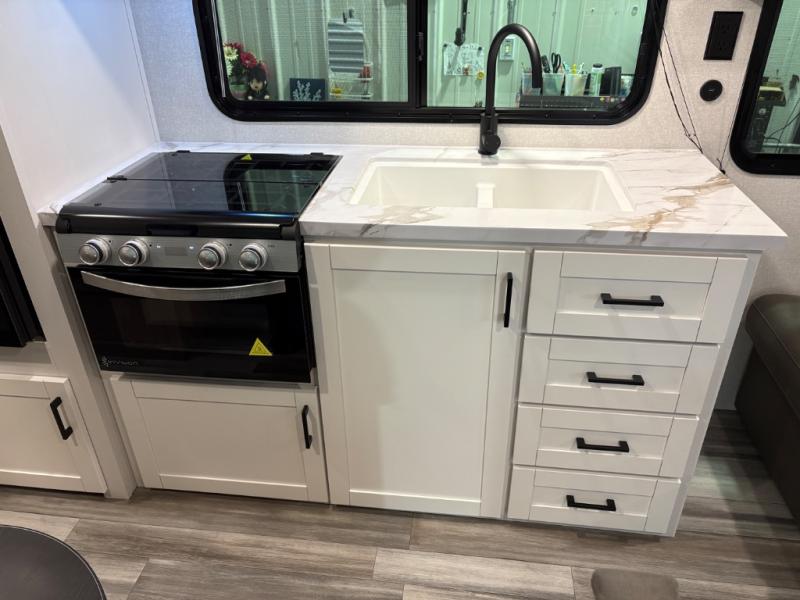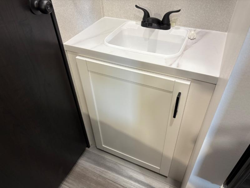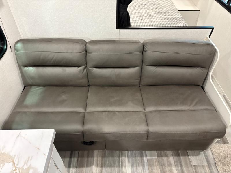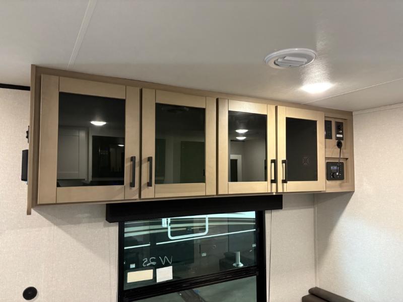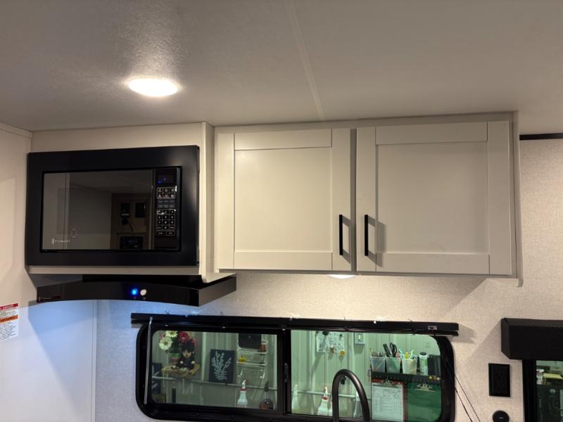 You can comfortably sleep eight to ten people in this trailer thanks to the double-size bunks, the RV queen bed in the front bedroom, plus the booth dinette and jack-knife sofa in the main living area! The chef of your crew will have a three burner cooktop and microwave oven to prepare meals, and everyone can store their favorite drinks in the 8 cu. ft. 12V refrigerator. The bathroom includes a shower and a toilet, with the sink just outside of this room so others can brush their teeth if one is taking a shower before bed. The outside storage will let you bring along fishing poles and the 16' power awning with LED lights will create a nice place to gather in the evenings!