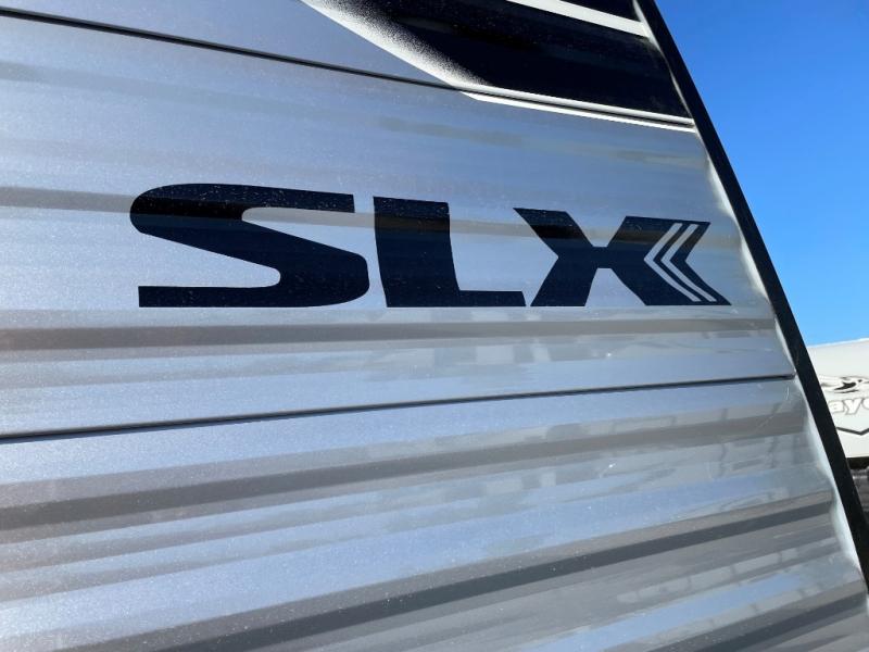 The Jayco Jay Flight SLX travel trailer is quite easy to own because it is lightweight for an easier towing experience. Built on a fully integrated A-frame with galvanized-steel, impact-resistant wheel wells, the Jay Flight SLX has quality at its very foundation. That quality continues on to the electric self-adjusting brakes, easy-lube hubs, Magnum Truss roof system, and LP quick connect. Some of what the mandatory Customer Value Package includes is backup camera prep, Keyed-Alike entry and baggage doors, and an on-demand tankless water heater.