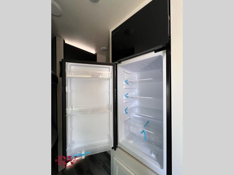 You can comfortably sleep up to eight people in this trailer thanks to the double-size bunks, the RV queen bed in the front bedroom, plus the booth dinette and jack-knife sofa in the main living area! The chef of your crew will have a three burner cooktop and microwave oven to prepare meals, and everyone can store their favorite drinks in the 8 cu. ft. 12V refrigerator. The bathroom includes a shower and a toilet, with the sink just outside of this room so others can brush their teeth if one is taking a shower before bed. The outside storage will let you bring along fishing poles and the 16' power awning with LED lights will create a nice place to gather in the evenings!