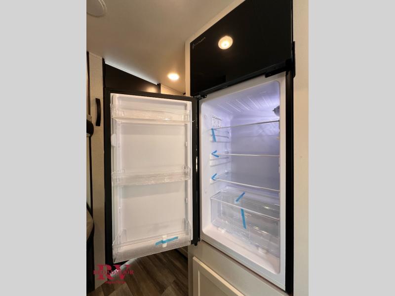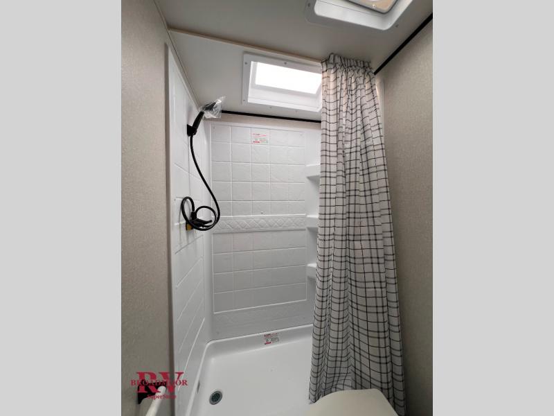 You can comfortably sleep up to eight people in this trailer thanks to the double-size bunks, the RV queen bed in the front bedroom, plus the booth dinette and jack-knife sofa in the main living area! The chef of your crew will have a three burner cooktop and microwave oven to prepare meals, and everyone can store their favorite drinks in the 8 cu. ft. 12V refrigerator. The bathroom includes a shower and a toilet, with the sink just outside of this room so others can brush their teeth if one is taking a shower before bed. The outside storage will let you bring along fishing poles and the 16' power awning with LED lights will create a nice place to gather in the evenings!