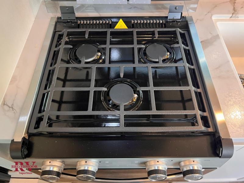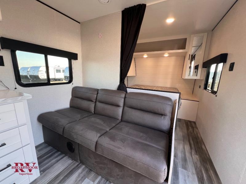 You can comfortably sleep up to eight people in this trailer thanks to the double-size bunks, the RV queen bed in the front bedroom, plus the booth dinette and jack-knife sofa in the main living area! The chef of your crew will have a three burner cooktop and microwave oven to prepare meals, and everyone can store their favorite drinks in the 8 cu. ft. 12V refrigerator. The bathroom includes a shower and a toilet, with the sink just outside of this room so others can brush their teeth if one is taking a shower before bed. The outside storage will let you bring along fishing poles and the 16' power awning with LED lights will create a nice place to gather in the evenings!