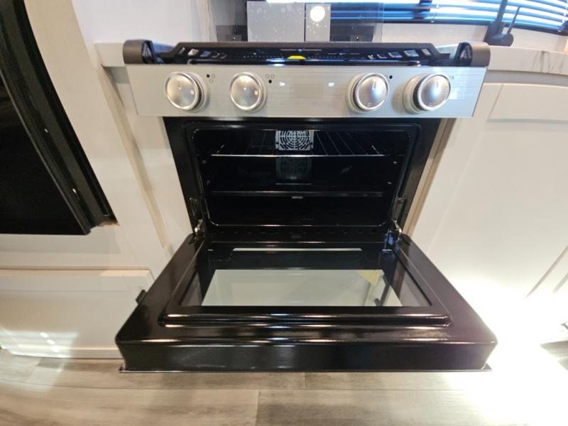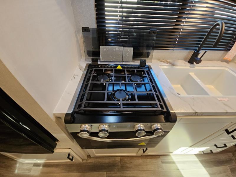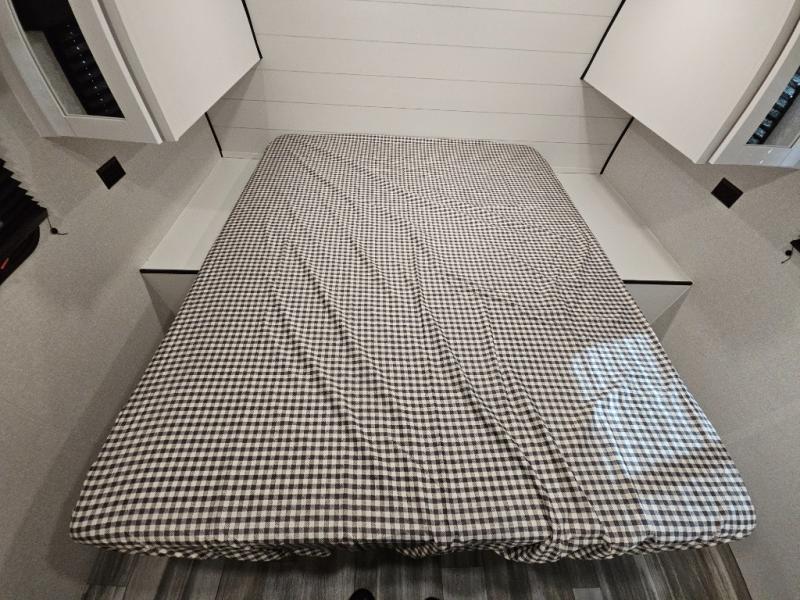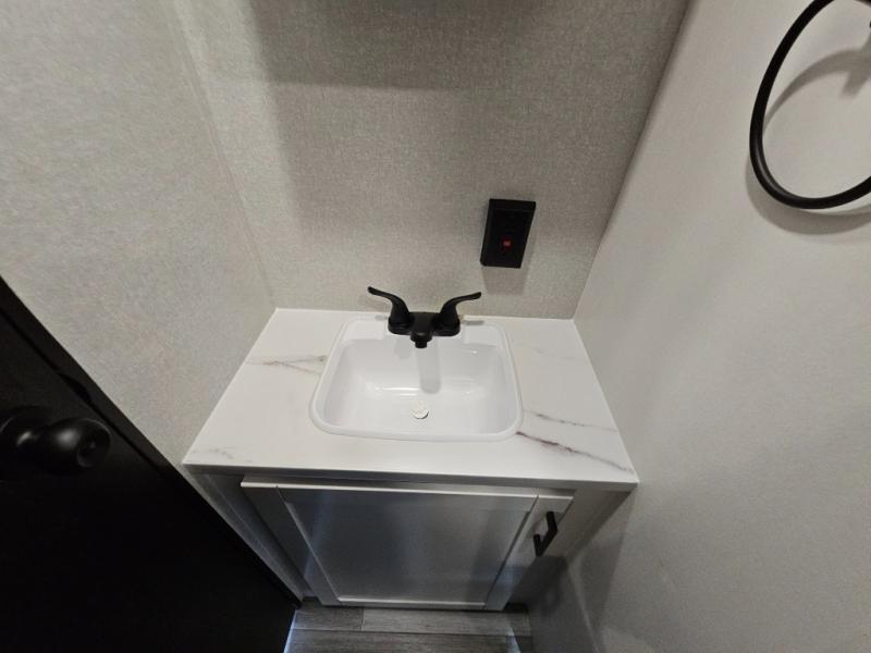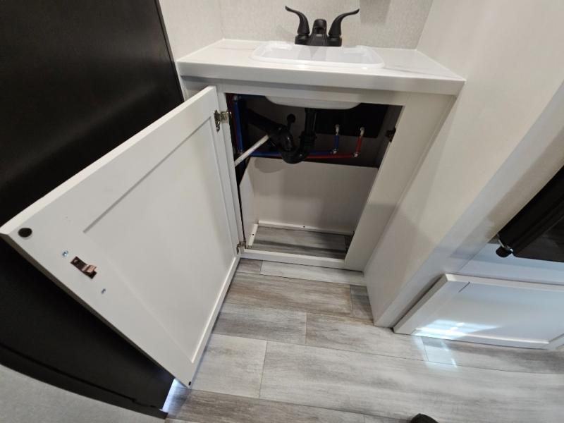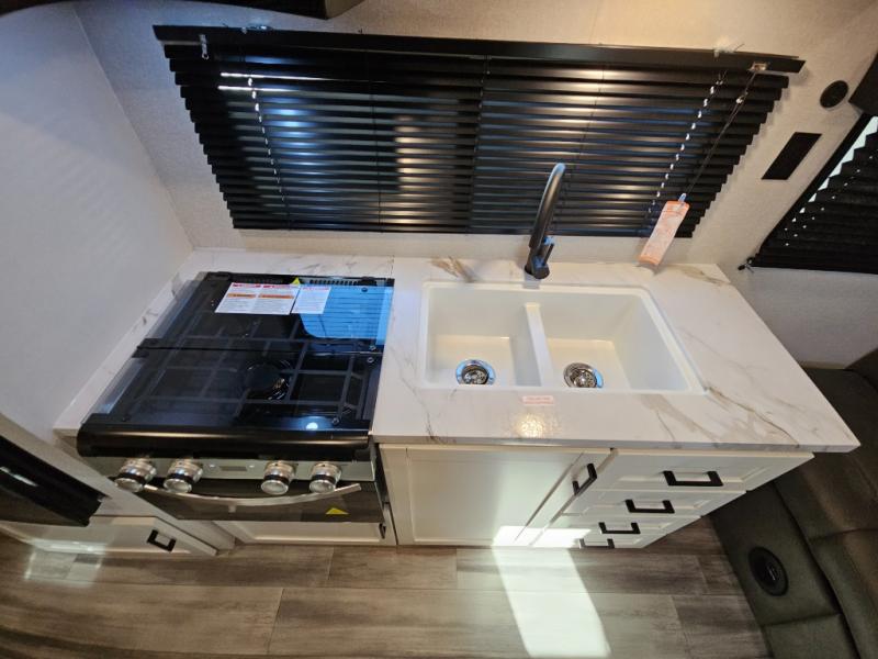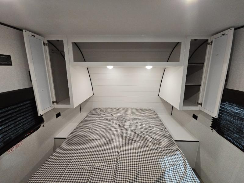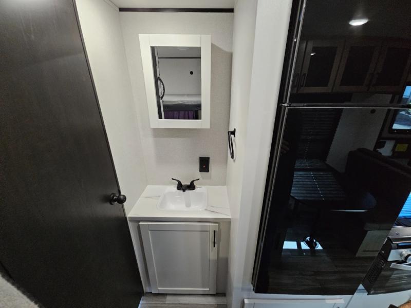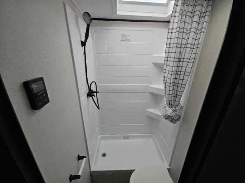 You can comfortably sleep up to eight people in this trailer thanks to the double-size bunks, the RV queen bed in the front bedroom, plus the booth dinette and jack-knife sofa in the main living area! The chef of your crew will have a three burner cooktop and microwave oven to prepare meals, and everyone can store their favorite drinks in the 8 cu. ft. 12V refrigerator. The bathroom includes a shower and a toilet, with the sink just outside of this room so others can brush their teeth if one is taking a shower before bed. The outside storage will let you bring along fishing poles and the 16' power awning with LED lights will create a nice place to gather in the evenings!