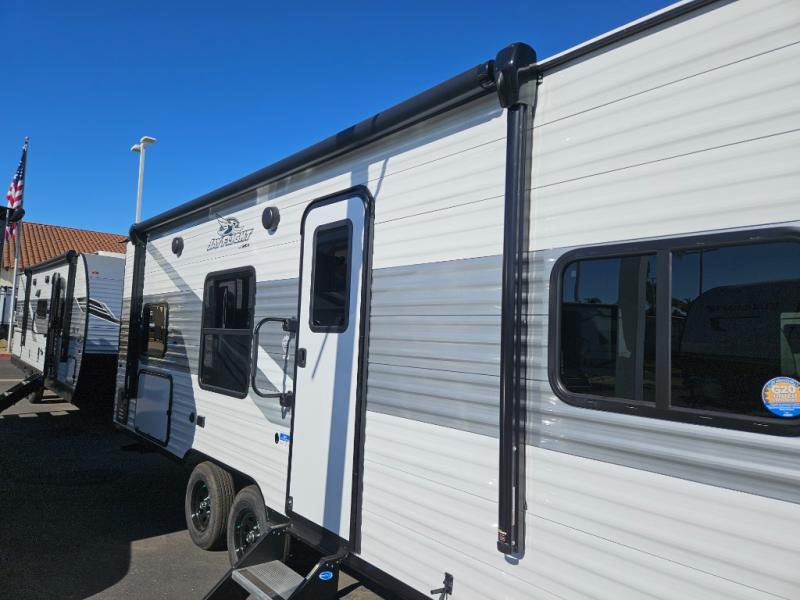 The Jayco Jay Flight SLX travel trailer is quite easy to own because it is lightweight for an easier towing experience. Built on a fully integrated A-frame with galvanized-steel, impact-resistant wheel wells, the Jay Flight SLX has quality at its very foundation. That quality continues on to the electric self-adjusting brakes, easy-lube hubs, Magnum Truss roof system, and LP quick connect. Some of what the mandatory Customer Value Package includes is backup camera prep, Keyed-Alike entry and baggage doors, and an on-demand tankless water heater.