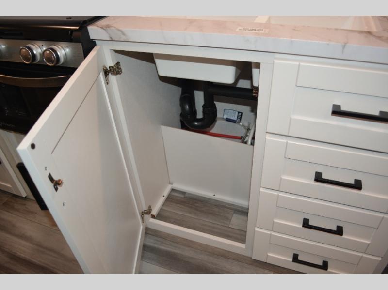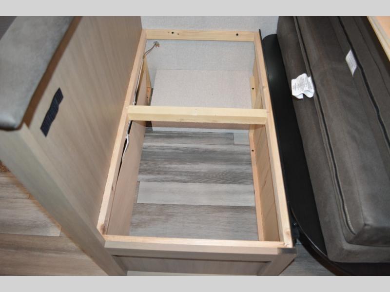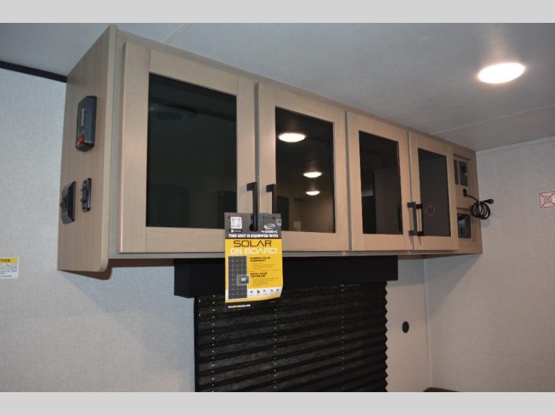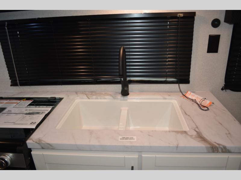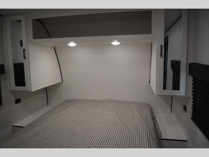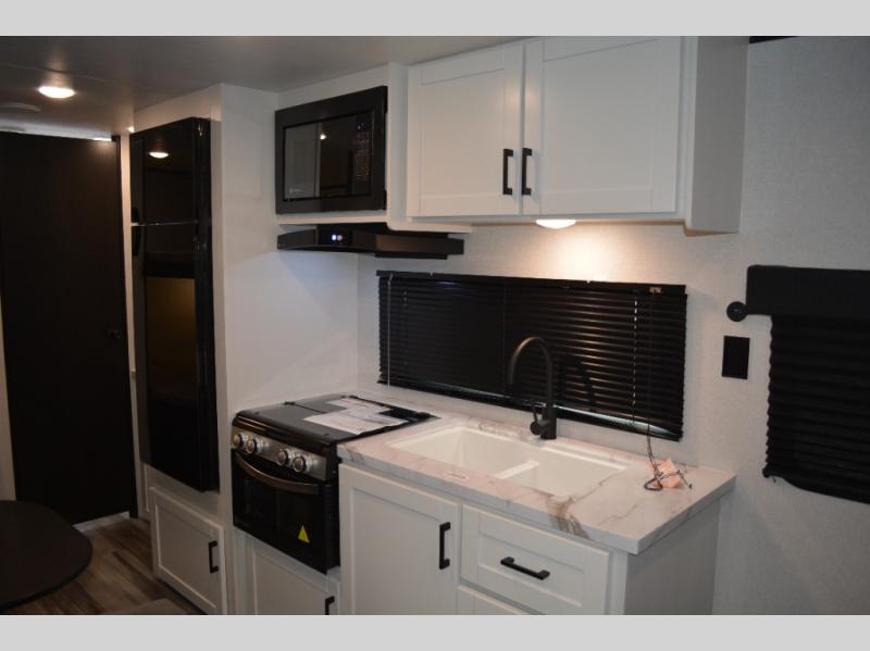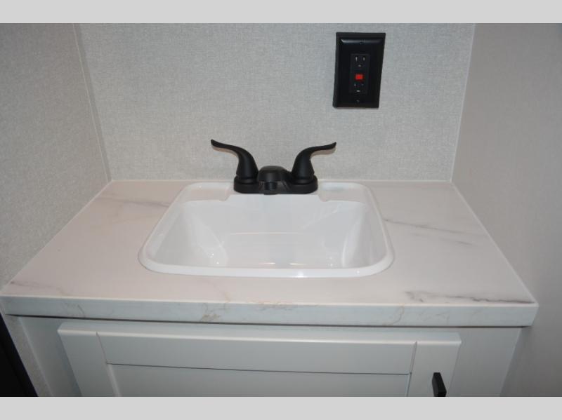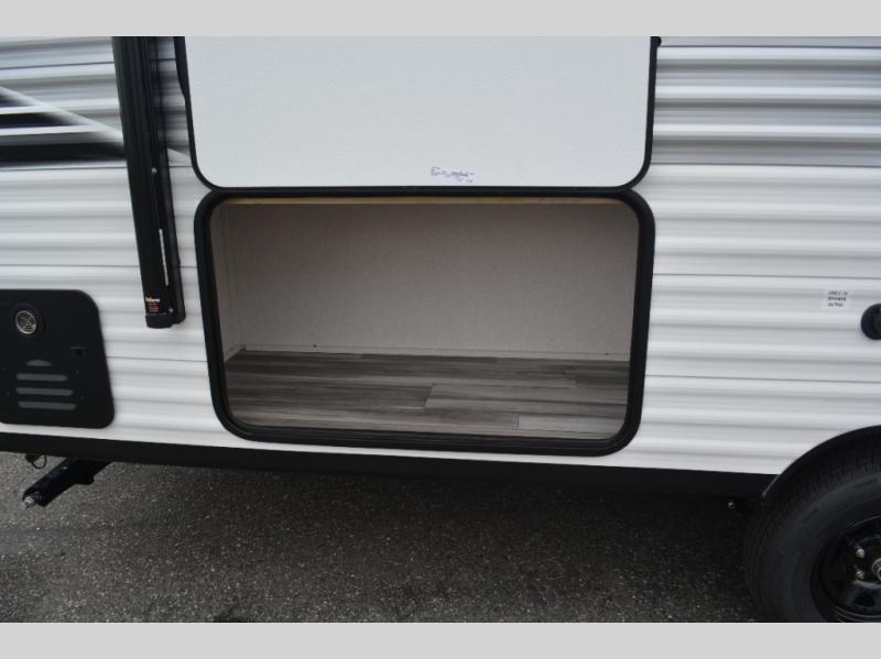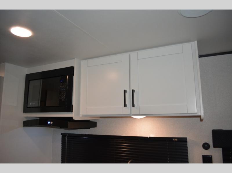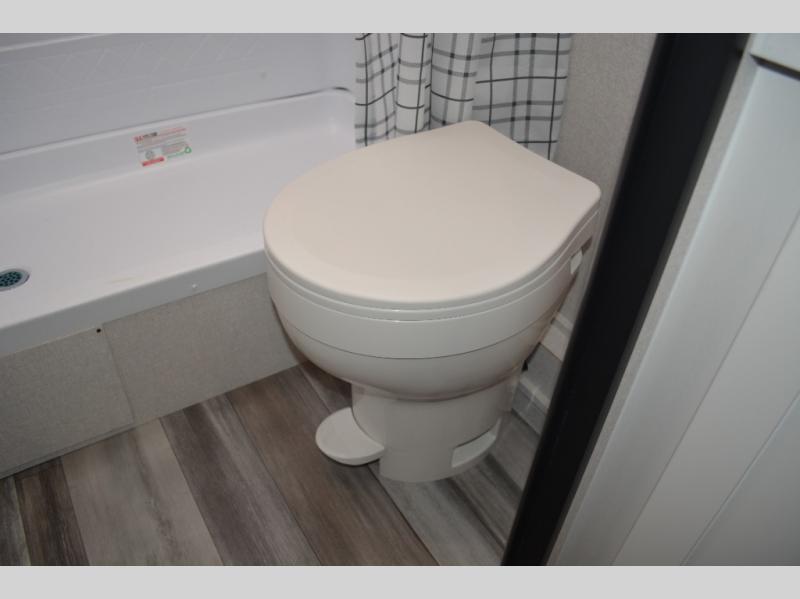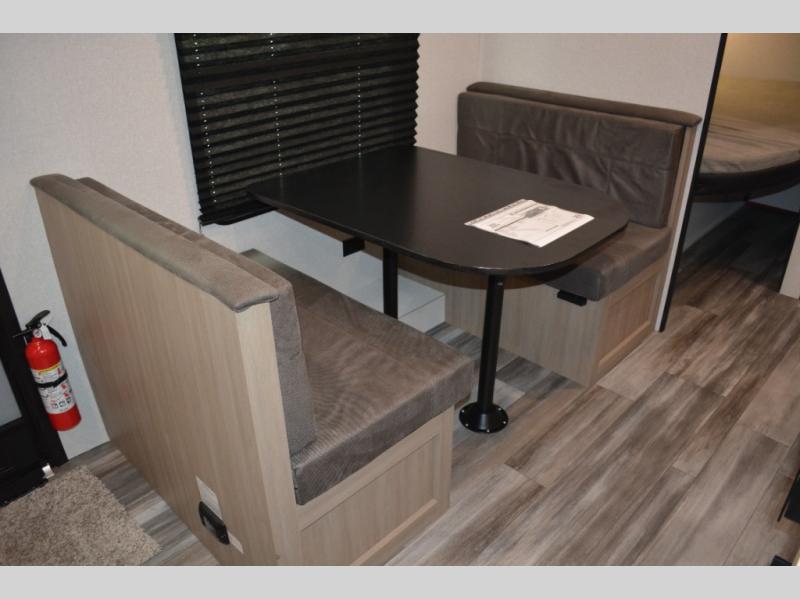 You can comfortably sleep up to eight people in this trailer thanks to the double-size bunks, the RV queen bed in the front bedroom, plus the booth dinette and jack-knife sofa in the main living area! The chef of your crew will have a three burner cooktop and microwave oven to prepare meals, and everyone can store their favorite drinks in the 8 cu. ft. 12V refrigerator. The bathroom includes a shower and a toilet, with the sink just outside of this room so others can brush their teeth if one is taking a shower before bed. The outside storage will let you bring along fishing poles and the 16' power awning with LED lights will create a nice place to gather in the evenings!