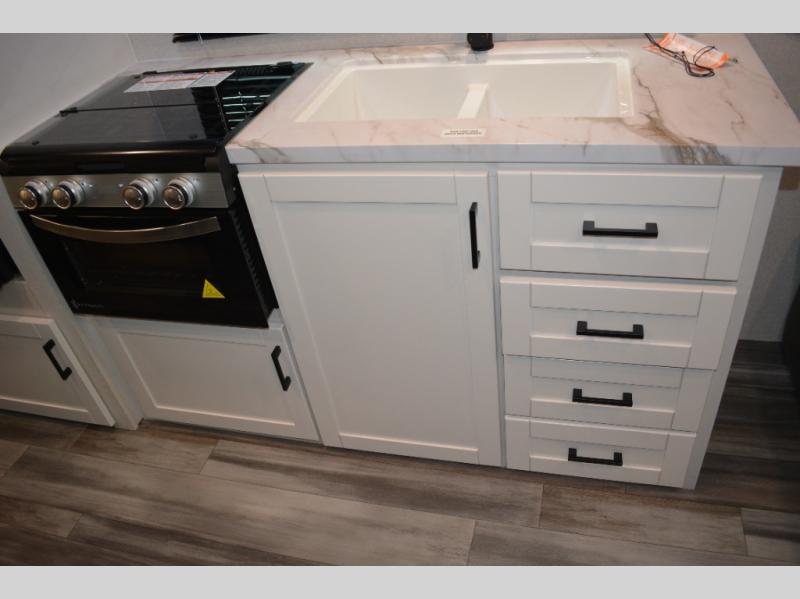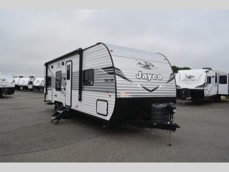 The Jayco Jay Flight SLX travel trailer is quite easy to own because it is lightweight for an easier towing experience. Built on a fully integrated A-frame with galvanized-steel, impact-resistant wheel wells, the Jay Flight SLX has quality at its very foundation. That quality continues on to the electric self-adjusting brakes, easy-lube hubs, Magnum Truss roof system, and LP quick connect. Some of what the mandatory Customer Value Package includes is backup camera prep, Keyed-Alike entry and baggage doors, and an on-demand tankless water heater.