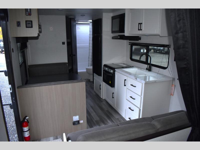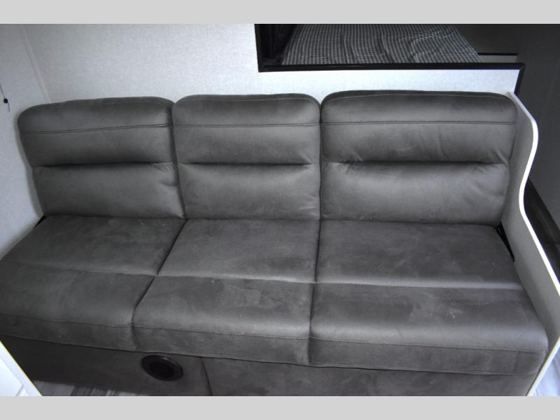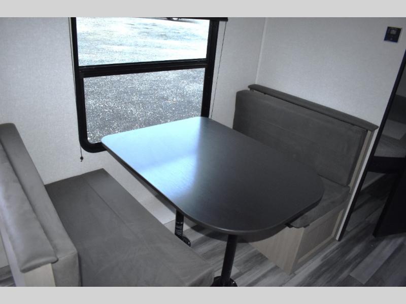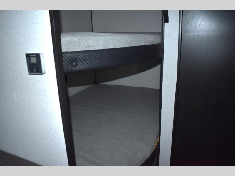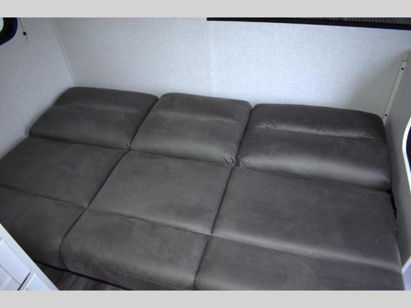 You can comfortably sleep up to eight people in this trailer thanks to the double-size bunks, the RV queen bed in the front bedroom, plus the booth dinette and jack-knife sofa in the main living area! The chef of your crew will have a three burner cooktop and microwave oven to prepare meals, and everyone can store their favorite drinks in the 8 cu. ft. 12V refrigerator. The bathroom includes a shower and a toilet, with the sink just outside of this room so others can brush their teeth if one is taking a shower before bed. The outside storage will let you bring along fishing poles and the 16' power awning with LED lights will create a nice place to gather in the evenings!