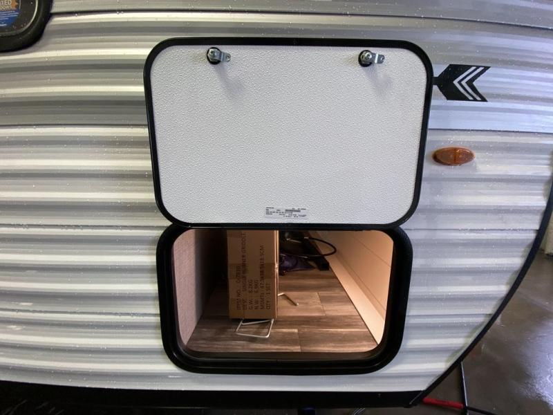 The Jayco Jay Flight SLX travel trailer is quite easy to own because it is lightweight for an easier towing experience. Built on a fully integrated A-frame with galvanized-steel, impact-resistant wheel wells, the Jay Flight SLX has quality at its very foundation. That quality continues on to the electric self-adjusting brakes, easy-lube hubs, Magnum Truss roof system, and LP quick connect. Some of what the mandatory Customer Value Package includes is backup camera prep, Keyed-Alike entry and baggage doors, and an on-demand tankless water heater.