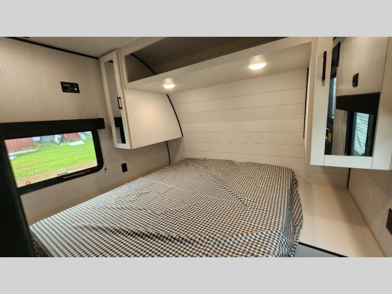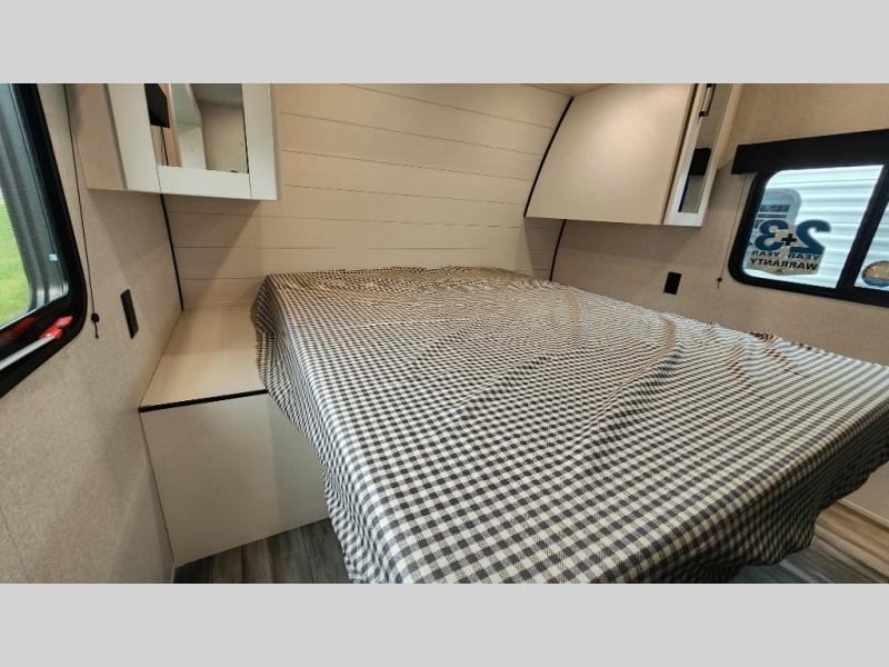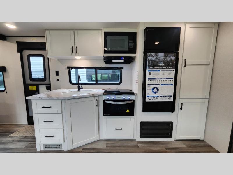 The Jayco Jay Flight SLX travel trailer is quite easy to own because it is lightweight for an easier towing experience. Built on a fully integrated A-frame with galvanized-steel, impact-resistant wheel wells, the Jay Flight SLX has quality at its very foundation. That quality continues on to the electric self-adjusting brakes, easy-lube hubs, Magnum Truss roof system, and LP quick connect. Some of what the mandatory Customer Value Package includes is backup camera prep, Keyed-Alike entry and baggage doors, and an on-demand tankless water heater.
