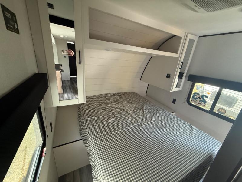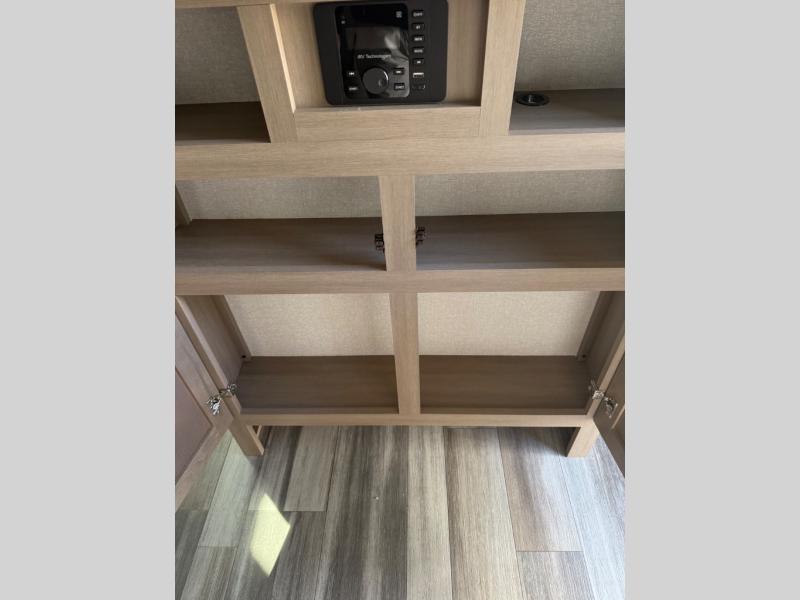 Private Front Bedroom – Enjoy a restful night’s sleep on the RV queen bed, with dual entry for added convenience.