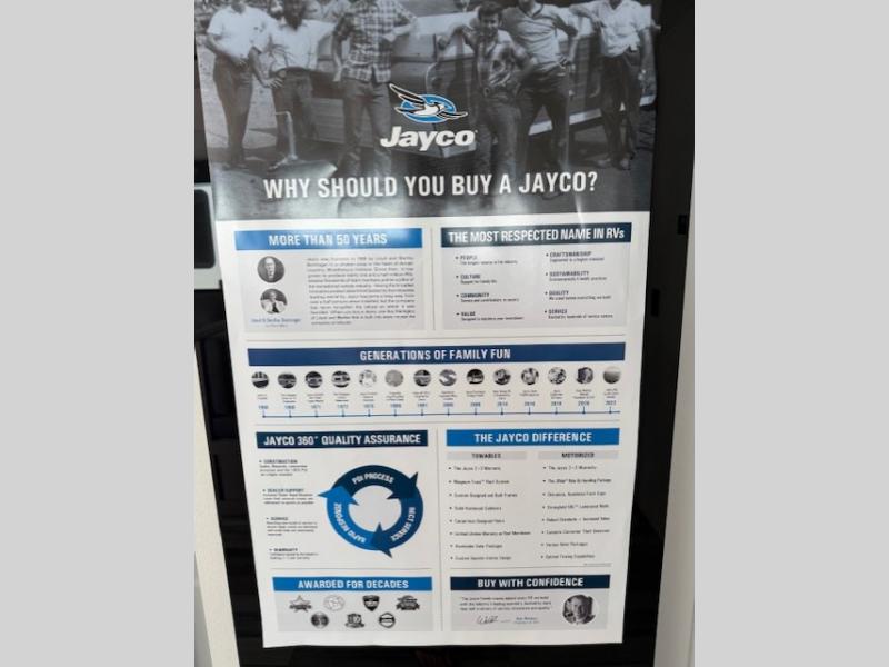 The Jayco Jay Flight SLX travel trailer is quite easy to own because it is lightweight for an easier towing experience. Built on a fully integrated A-frame with galvanized-steel, impact-resistant wheel wells, the Jay Flight SLX has quality at its very foundation. That quality continues on to the electric self-adjusting brakes, easy-lube hubs, Magnum Truss roof system, and LP quick connect. Some of what the mandatory Customer Value Package includes is backup camera prep, Keyed-Alike entry and baggage doors, and an on-demand tankless water heater.