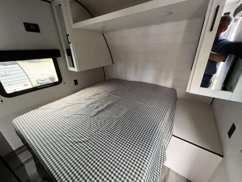 The Jayco Jay Flight SLX travel trailer is quite easy to own because it is lightweight for an easier towing experience. Built on a fully integrated A-frame with galvanized-steel, impact-resistant wheel wells, the Jay Flight SLX has quality at its very foundation. That quality continues on to the electric self-adjusting brakes, easy-lube hubs, Magnum Truss roof system, and LP quick connect. Some of what the mandatory Customer Value Package includes is backup camera prep, Keyed-Alike entry and baggage doors, marine grade exterior speakers, and an on-demand tankless water heater.