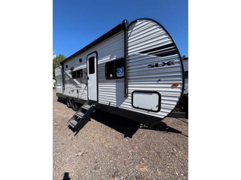 The Jayco Jay Flight SLX travel trailer is quite easy to own because it is lightweight for an easier towing experience. Built on a fully integrated A-frame with galvanized-steel, impact-resistant wheel wells, the Jay Flight SLX has quality at its very foundation. That quality continues on to the electric self-adjusting brakes, easy-lube hubs, Magnum Truss roof system, and LP quick connect. Some of what the mandatory Customer Value Package includes is backup camera prep, Keyed-Alike entry and baggage doors, and an on-demand tankless water heater.