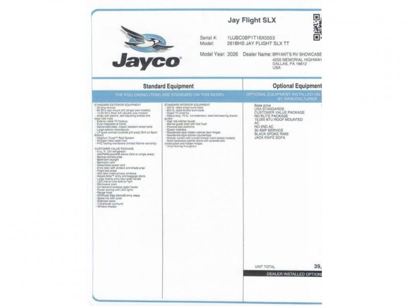 New 2026 Jayco Jay Flight SLX 261BHS Travel Trailer