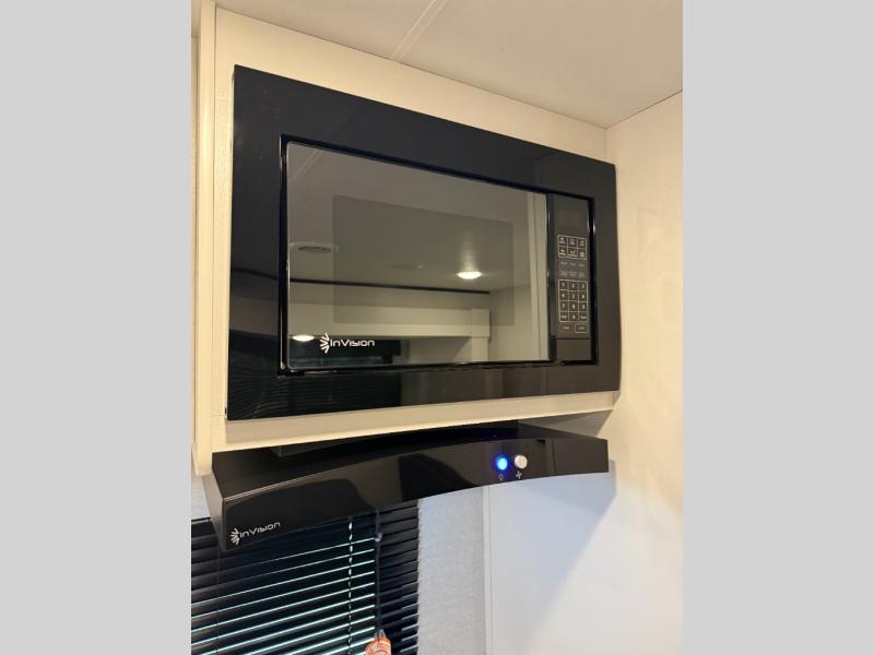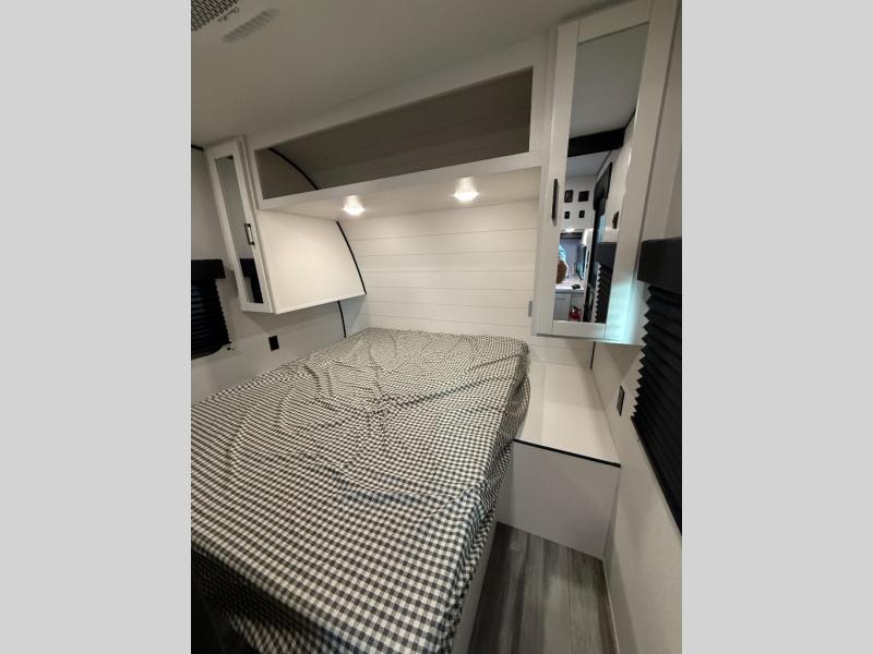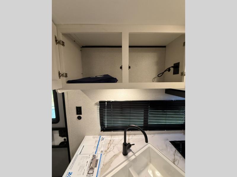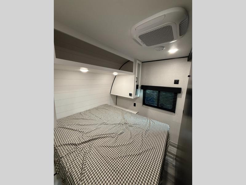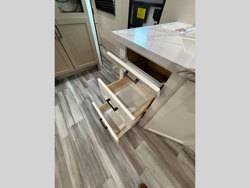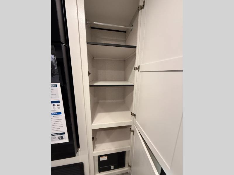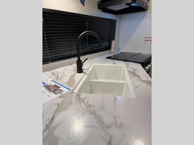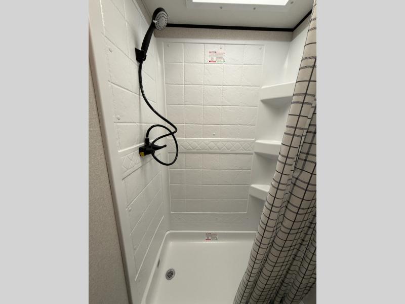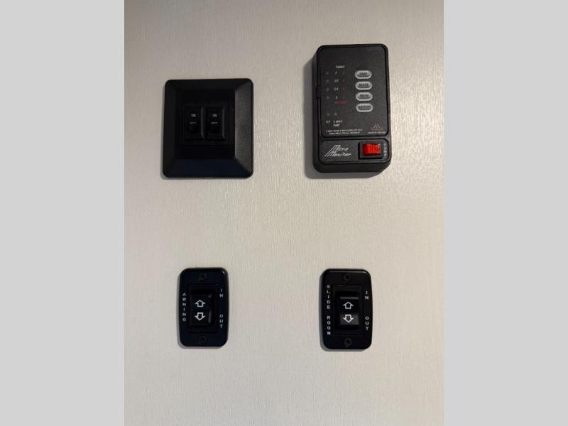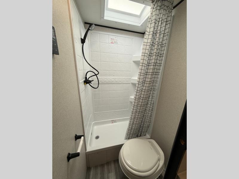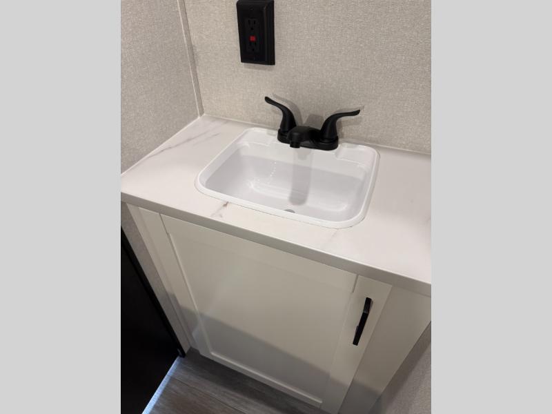 You can comfortably sleep up to ten people in this trailer thanks to the double-size bunks in back, the RV queen bed in the front bedroom, plus the booth dinette and jack-knife sofa in the main living area! The chef of your crew will have a three burner cooktop and microwave oven to prepare meals, and everyone can store their favorite drinks in the 8 cu. ft. 12V refrigerator inside, or in the outdoor refrigerator for convenience. The rear corner bathroom includes a shower and a toilet, with the sink just outside of this room so others can brush their teeth if one is taking a shower before bed. The outside storage is accessible on both sides of the unit and will easily allow you bring along camp chairs, yard games and more. A 16' powered awning with LED lights will create a nice place to gather in the evenings with family and friends!
