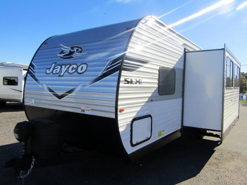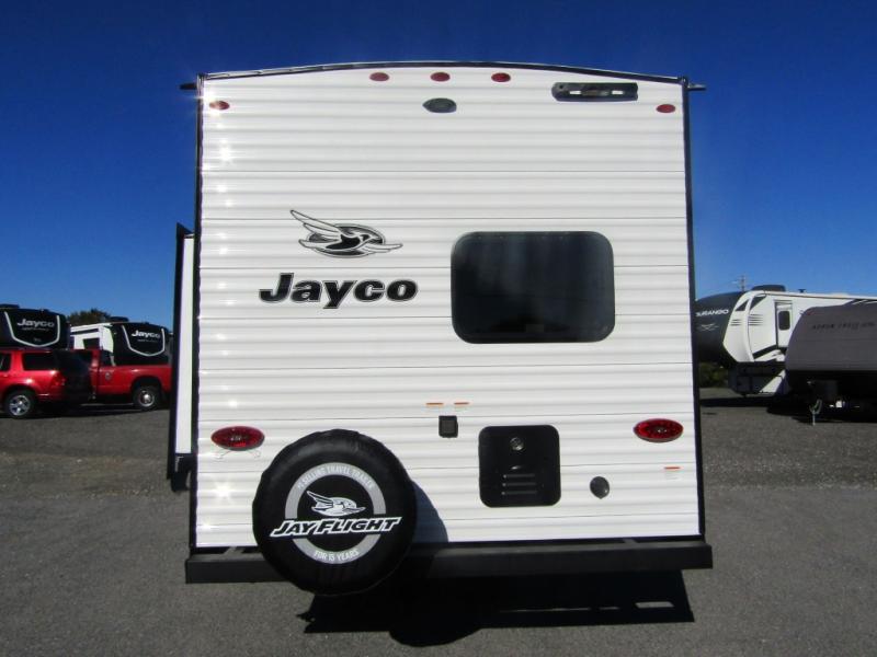 The Jayco Jay Flight SLX travel trailer is quite easy to own because it is lightweight for an easier towing experience. Built on a fully integrated A-frame with galvanized-steel, impact-resistant wheel wells, the Jay Flight SLX has quality at its very foundation. That quality continues on to the electric self-adjusting brakes, easy-lube hubs, Magnum Truss roof system, and LP quick connect. Some of what the mandatory Customer Value Package includes is backup camera prep, Keyed-Alike entry and baggage doors, and an on-demand tankless water heater.