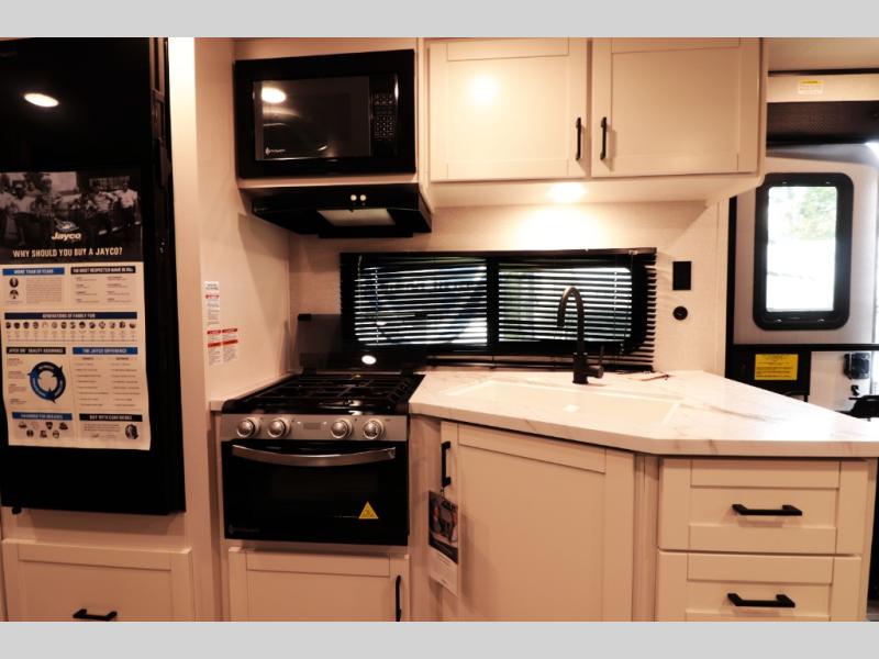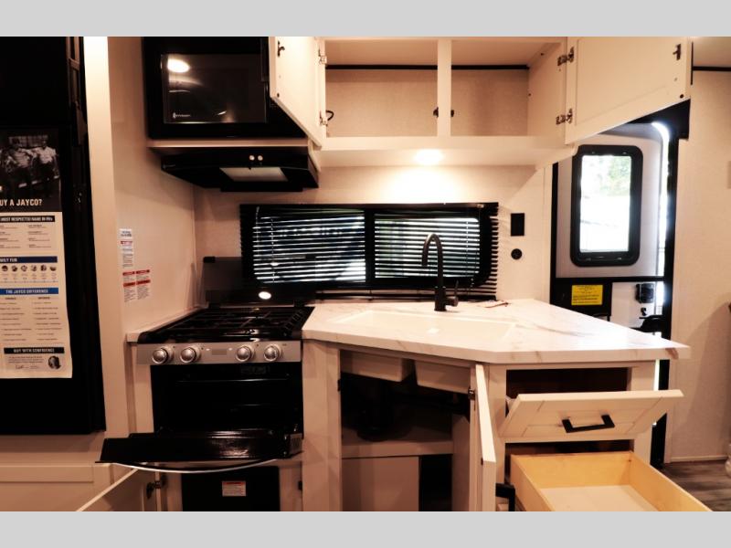 While Jayco’s spec pages don’t advertise in-house Wi-Fi routers or built-in cellular systems, the 262RLS includes these tech-friendly features: