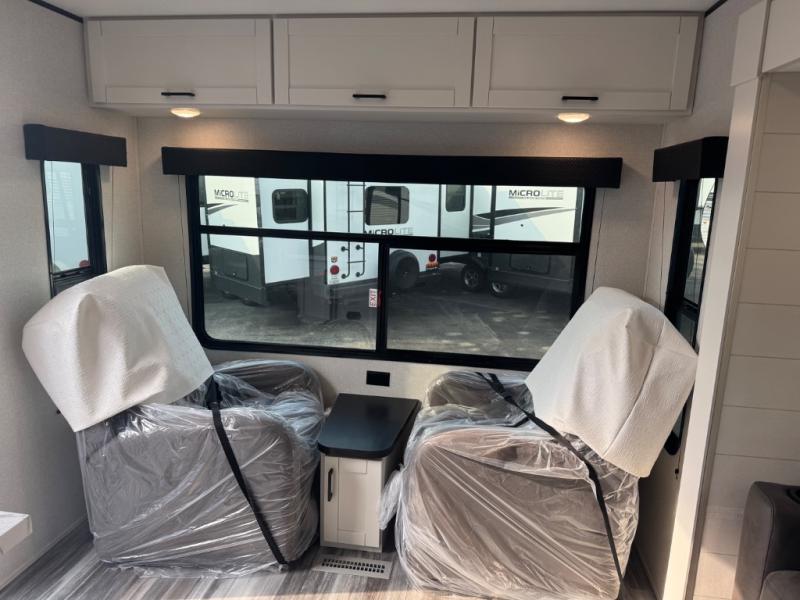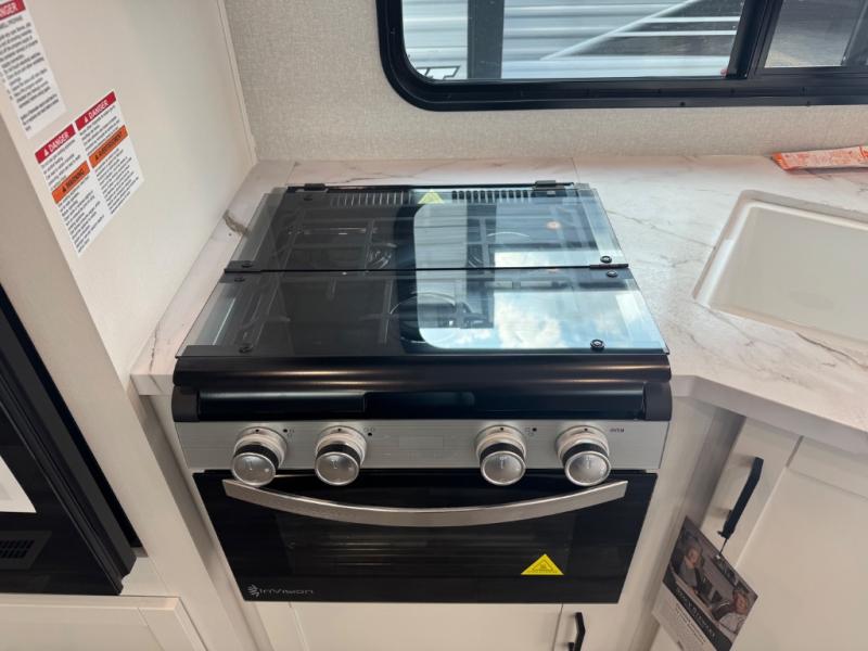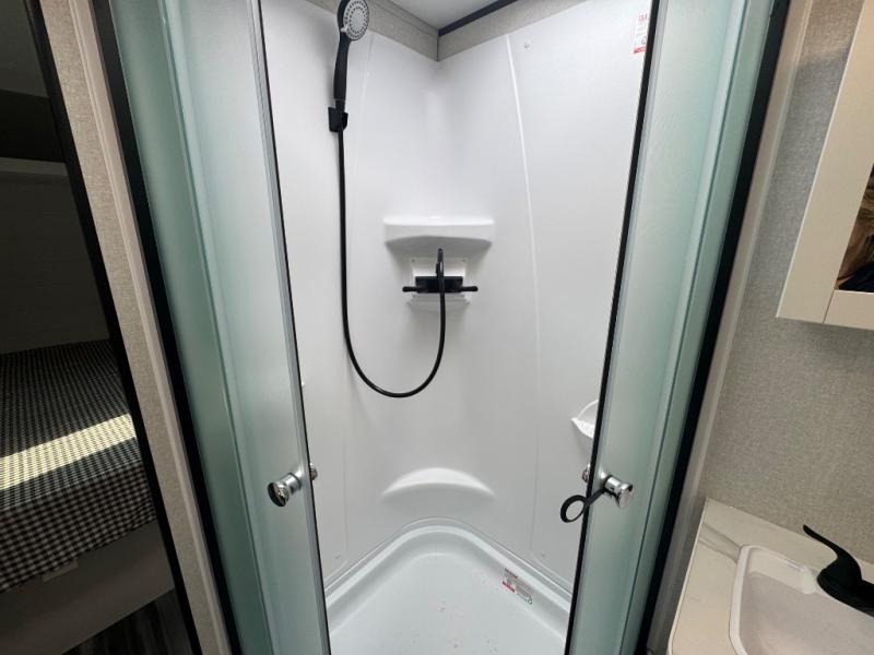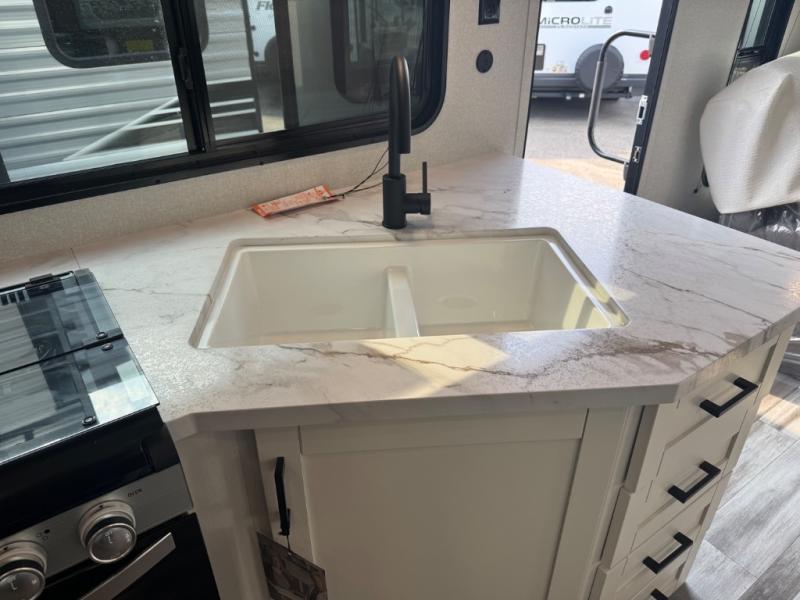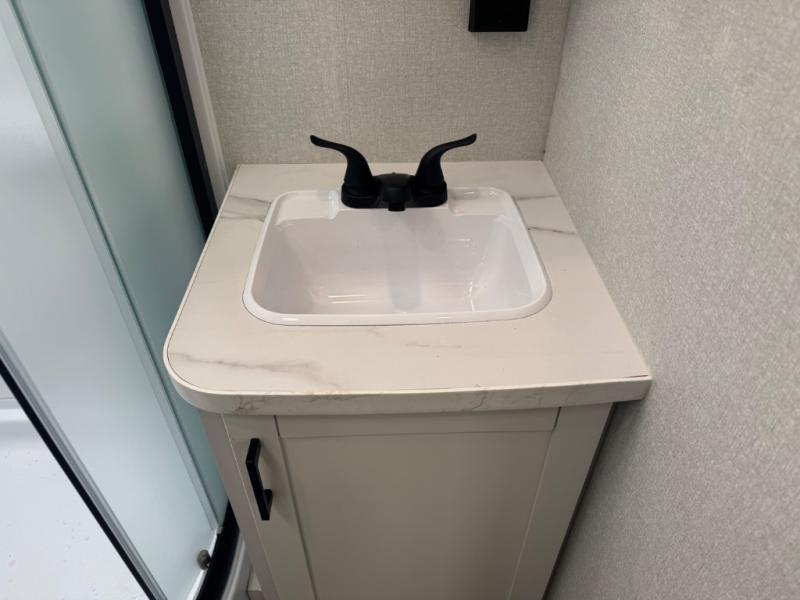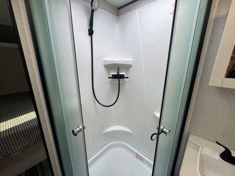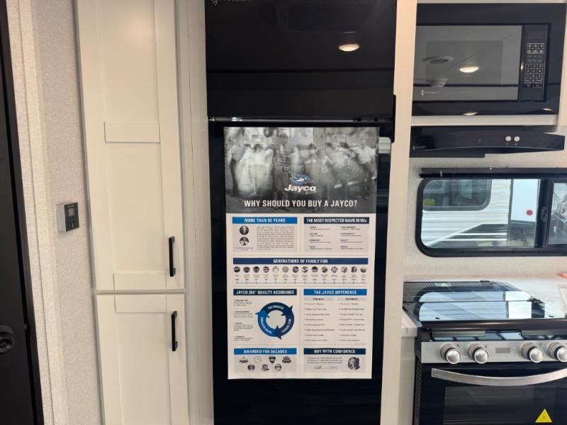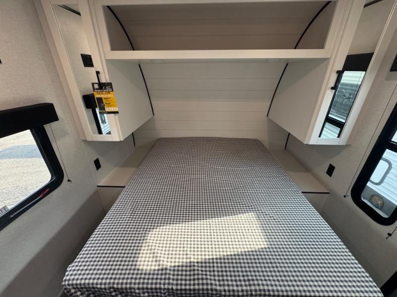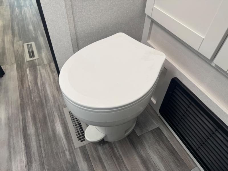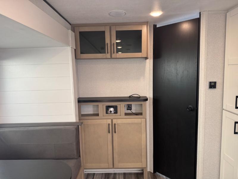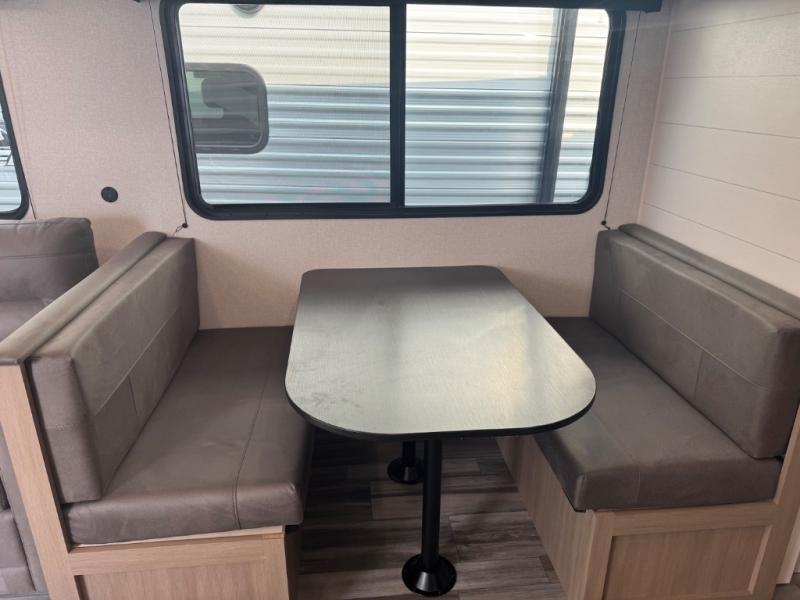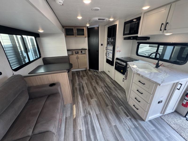 You can comfortably sleep up to six people in this trailer thanks to the RV queen bed in the front bedroom, plus the booth dinette and jack-knife sofa in the main living area! The chef of your crew will have a three burner cooktop and microwave oven to prepare meals, and everyone can store their favorite drinks in the 8 cu. ft. 12V refrigerator. The walk-through bath is spacious and includes a radius shower, toilet, a sink, and linen closet and is the full width of the unit. The outside storage will let you bring along camp chairs and games, fishing poles and more, plus the 18' 3" power awning with LED lights will create a nice place to gather in the evenings!