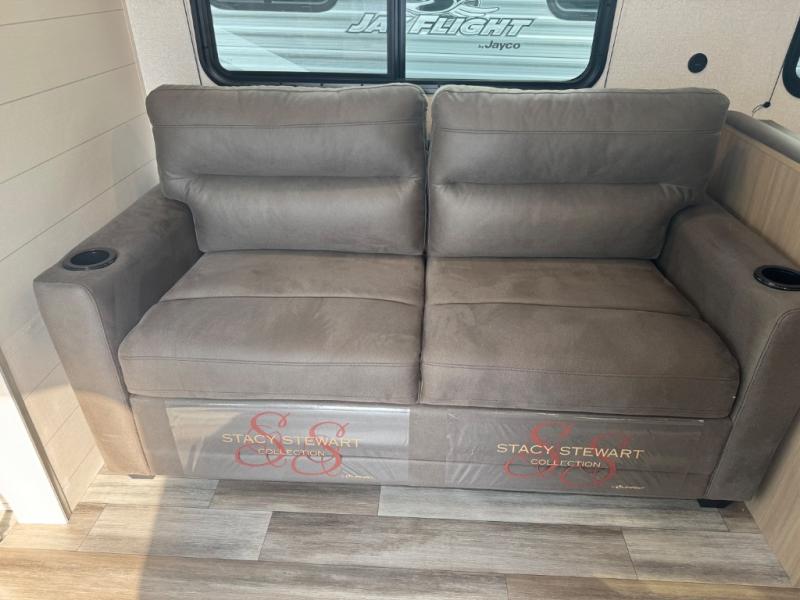 The Jayco Jay Flight SLX travel trailer is quite easy to own because it is lightweight for an easier towing experience. Built on a fully integrated A-frame with galvanized-steel, impact-resistant wheel wells, the Jay Flight SLX has quality at its very foundation. That quality continues on to the electric self-adjusting brakes, easy-lube hubs, Magnum Truss roof system, and LP quick connect. Some of what the mandatory Customer Value Package includes is backup camera prep, Keyed-Alike entry and baggage doors, marine grade exterior speakers, and an on-demand tankless water heater.