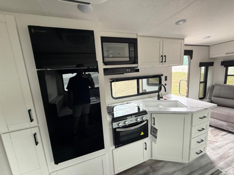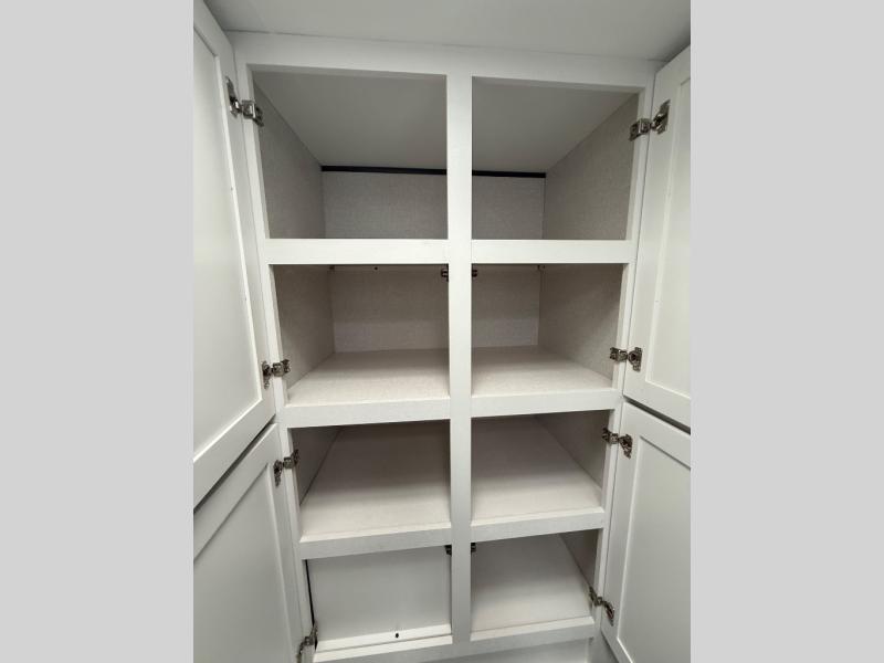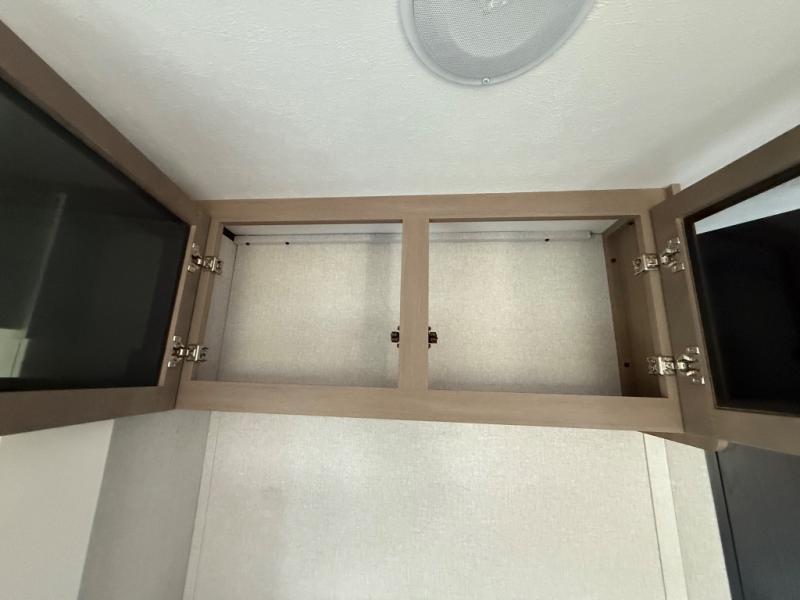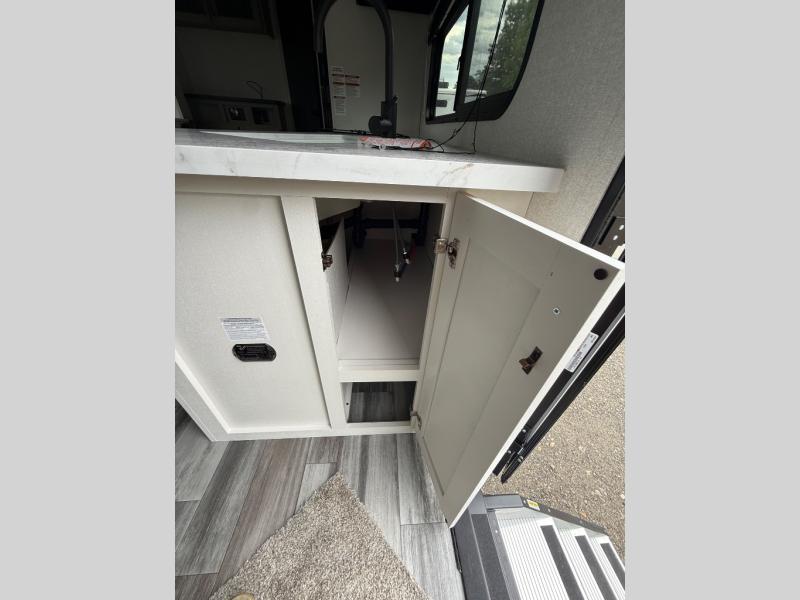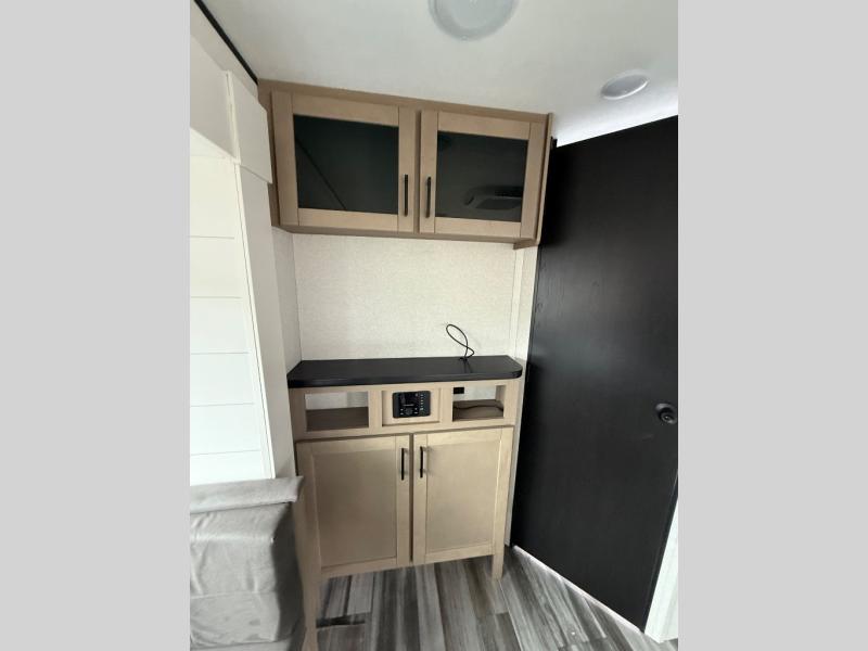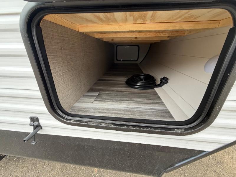 You can comfortably sleep up to six people in this trailer thanks to the RV queen bed in the front bedroom, plus the booth dinette and jack-knife sofa in the main living area! The chef of your crew will have a three burner cooktop and microwave oven to prepare meals, and everyone can store their favorite drinks in the 8 cu. ft. 12V refrigerator. The walk-through bath is spacious and includes a radius shower, toilet, a sink, and linen closet and is the full width of the unit. The outside storage will let you bring along camp chairs and games, fishing poles and more, plus the 18' 3" power awning with LED lights will create a nice place to gather in the evenings!
