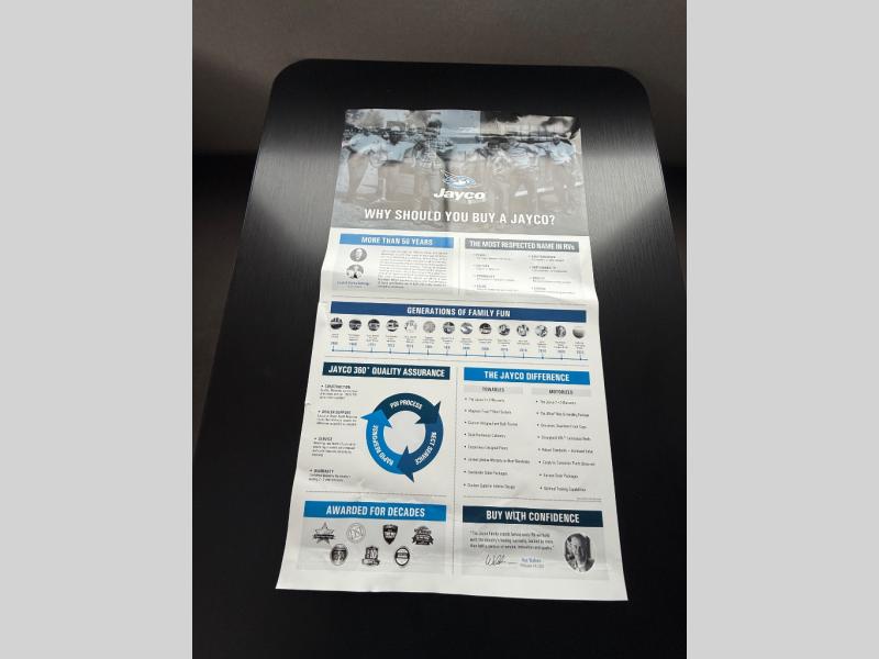 The Jayco Jay Flight SLX travel trailer is quite easy to own because it is lightweight for an easier towing experience. Built on a fully integrated A-frame with galvanized-steel, impact-resistant wheel wells, the Jay Flight SLX has quality at its very foundation. That quality continues on to the electric self-adjusting brakes, easy-lube hubs, Magnum Truss roof system, and LP quick connect. Some of what the mandatory Customer Value Package includes is backup camera prep, Keyed-Alike entry and baggage doors, marine grade exterior speakers, and an on-demand tankless water heater.