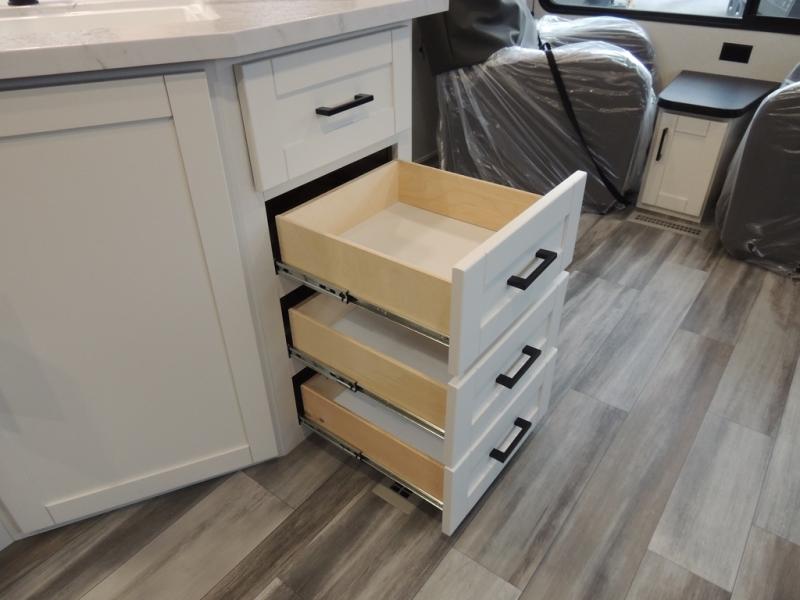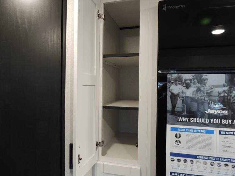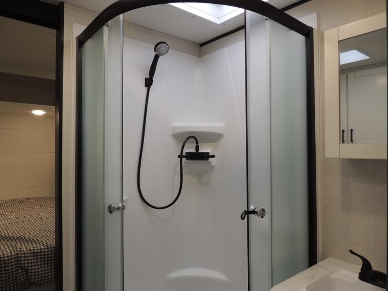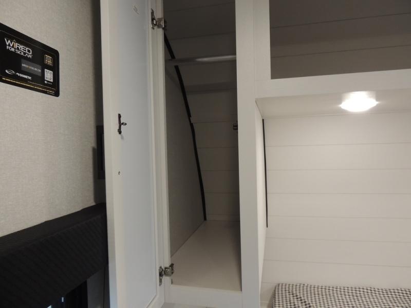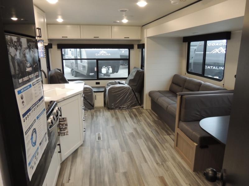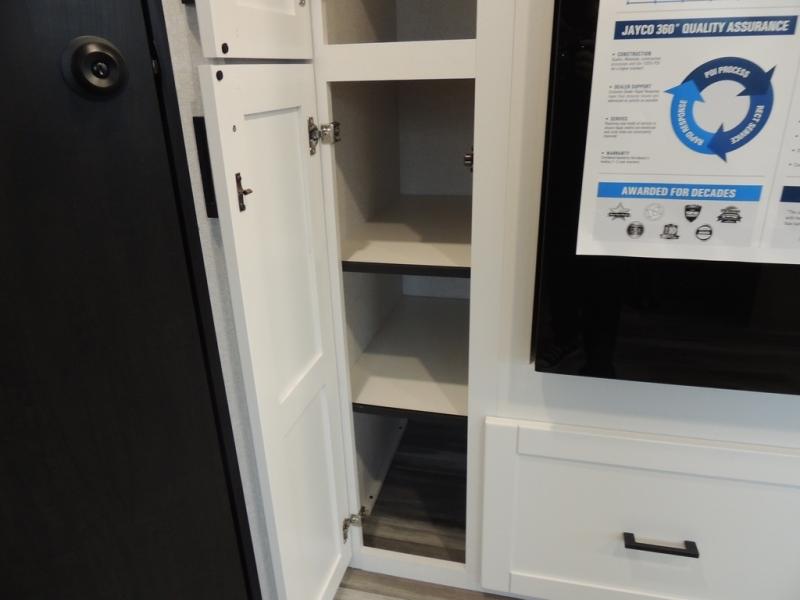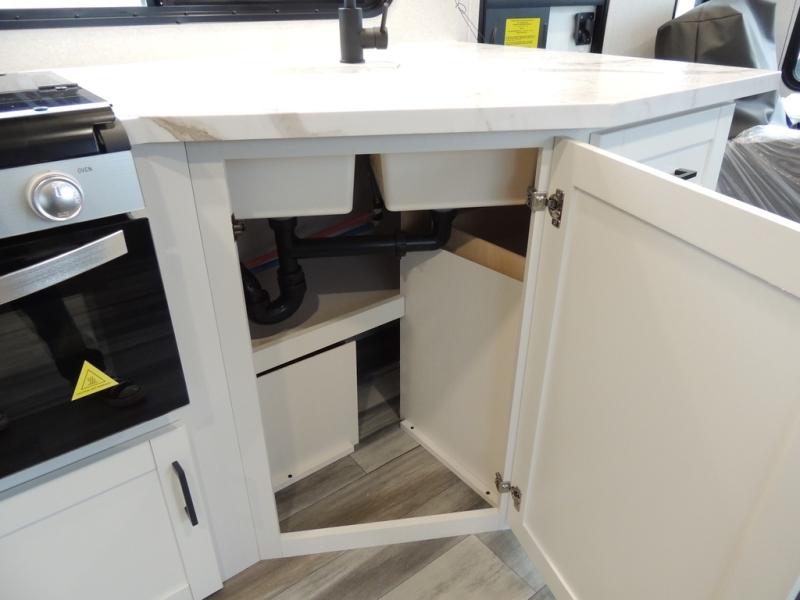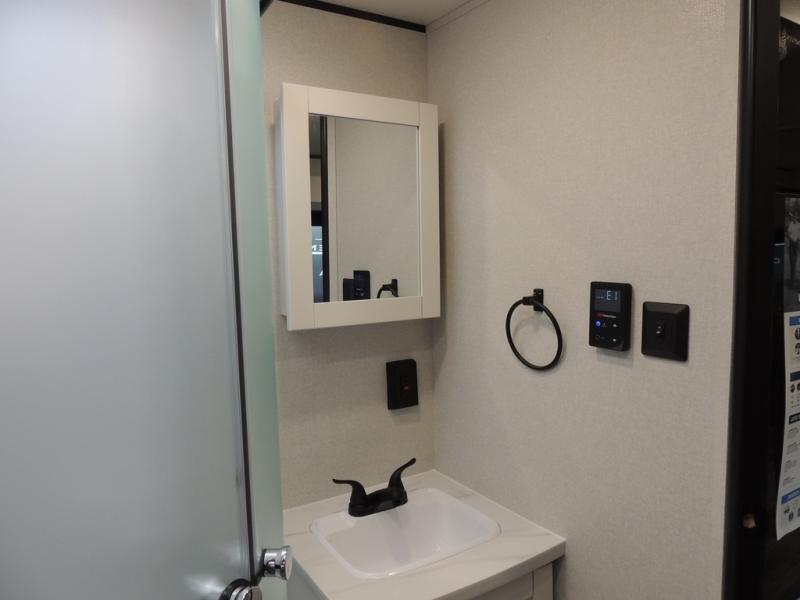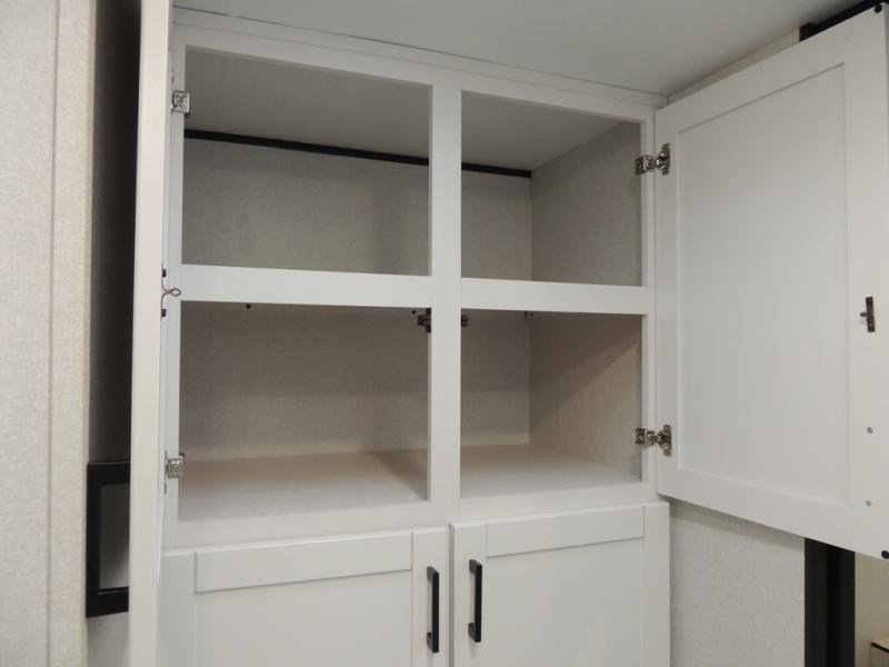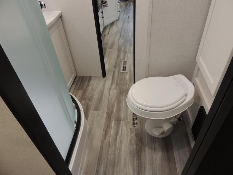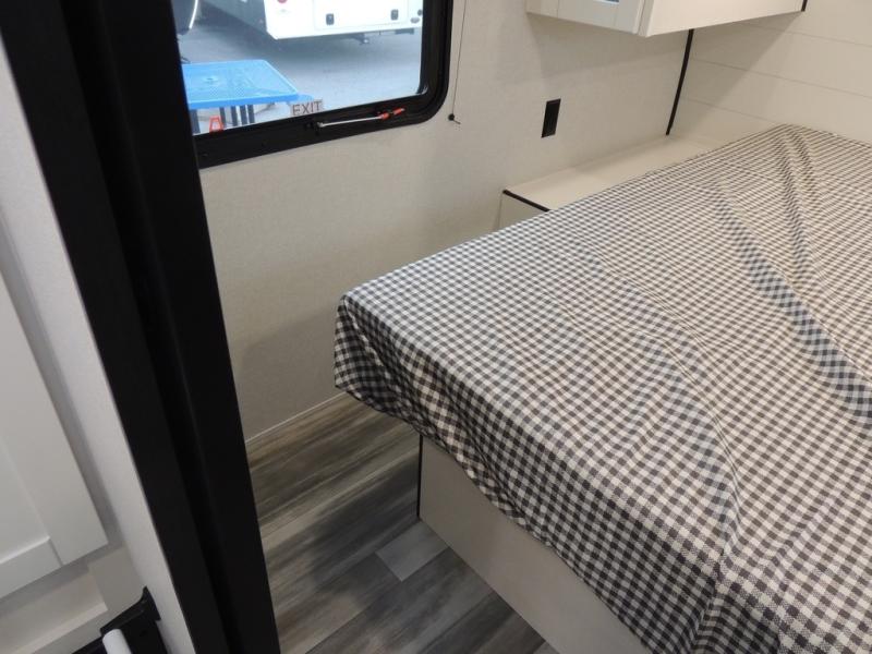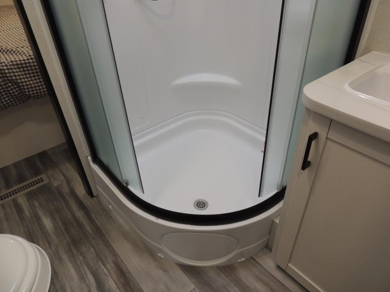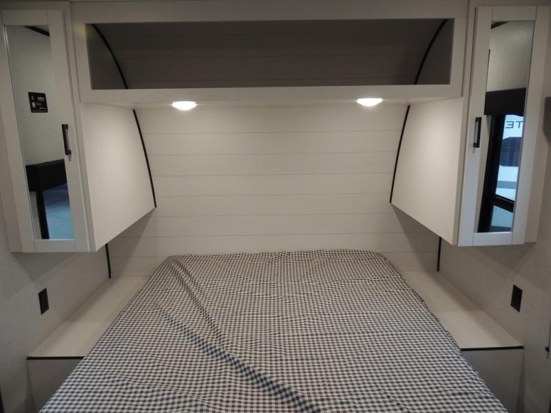 You can comfortably sleep up to six people in this trailer thanks to the RV queen bed in the front bedroom, plus the booth dinette and jack-knife sofa in the main living area! The chef of your crew will have a three burner cooktop and microwave oven to prepare meals, and everyone can store their favorite drinks in the 8 cu. ft. 12V refrigerator. The walk-through bath is spacious and includes a radius shower, toilet, a sink, and linen closet and is the full width of the unit. The outside storage will let you bring along camp chairs and games, fishing poles and more, plus the 18' 3" power awning with LED lights will create a nice place to gather in the evenings!