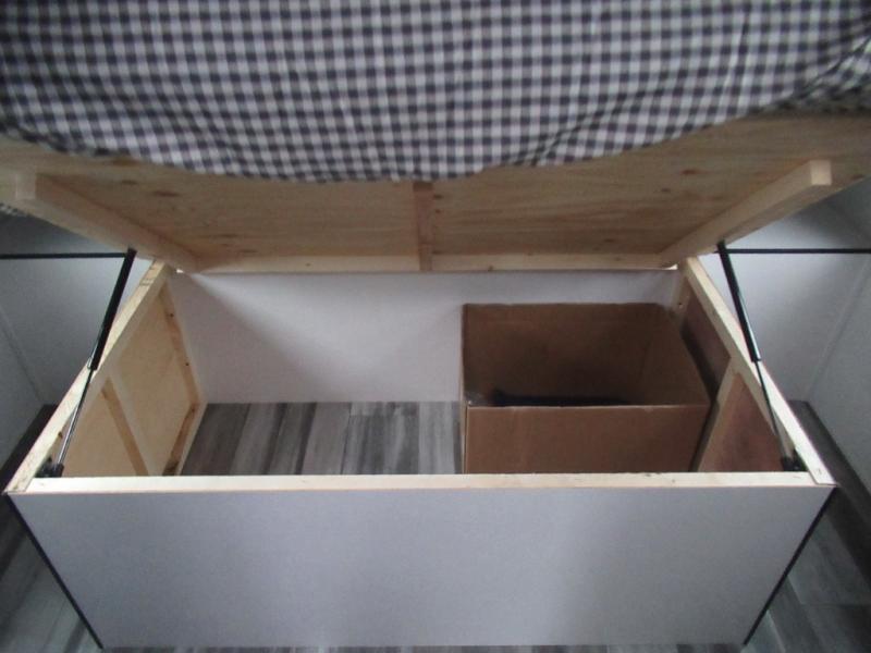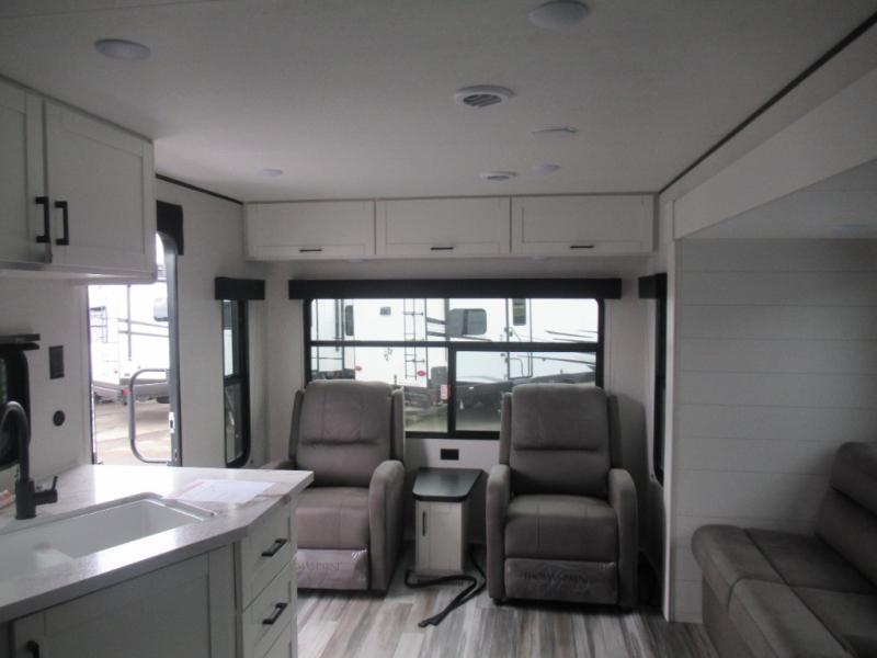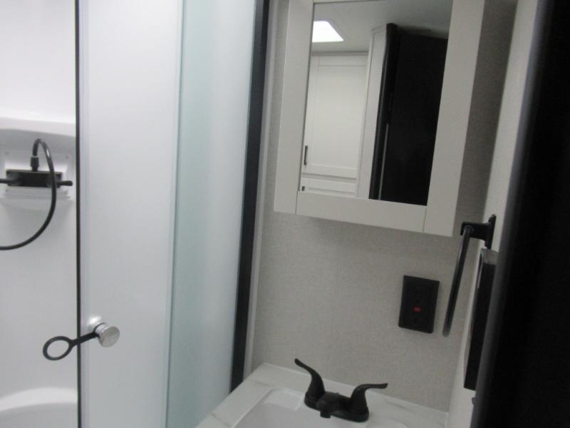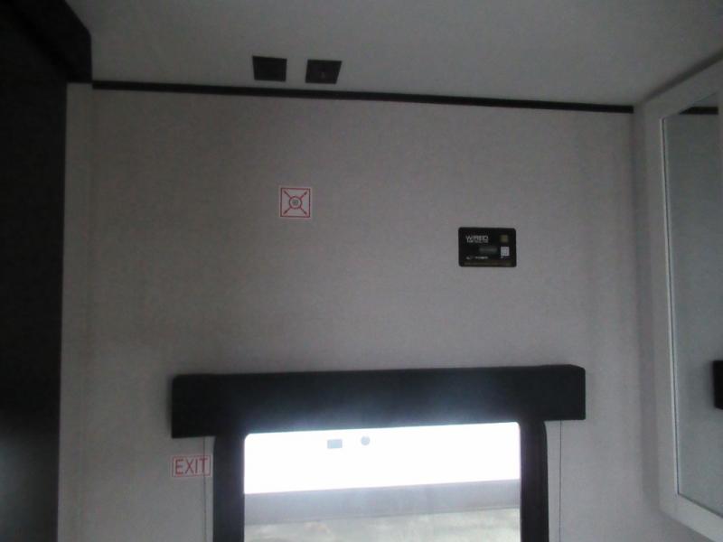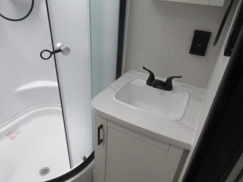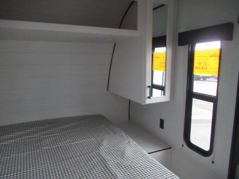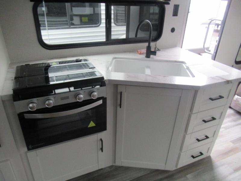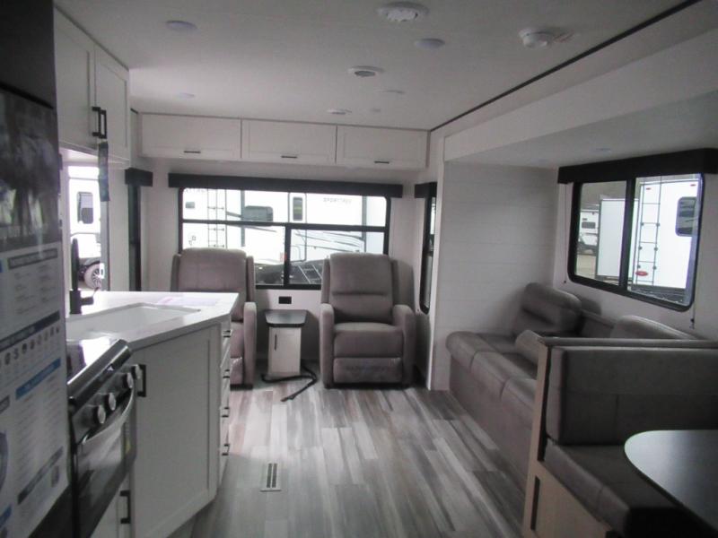 You can comfortably sleep up to six people in this trailer thanks to the RV queen bed in the front bedroom, plus the booth dinette and jack-knife sofa in the main living area! The chef of your crew will have a three burner cooktop and microwave oven to prepare meals, and everyone can store their favorite drinks in the 8 cu. ft. 12V refrigerator. The walk-through bath is spacious and includes a radius shower, toilet, a sink, and linen closet and is the full width of the unit. The outside storage will let you bring along camp chairs and games, fishing poles and more, plus the 18' 3" power awning with LED lights will create a nice place to gather in the evenings!
