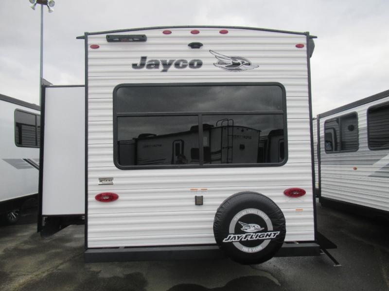 The Jayco Jay Flight SLX travel trailer is quite easy to own because it is lightweight for an easier towing experience. Built on a fully integrated A-frame with galvanized-steel, impact-resistant wheel wells, the Jay Flight SLX has quality at its very foundation. That quality continues on to the electric self-adjusting brakes, easy-lube hubs, Magnum Truss roof system, and LP quick connect. Some of what the mandatory Customer Value Package includes is backup camera prep, Keyed-Alike entry and baggage doors, and an on-demand tankless water heater.