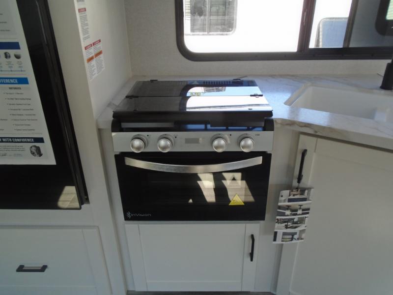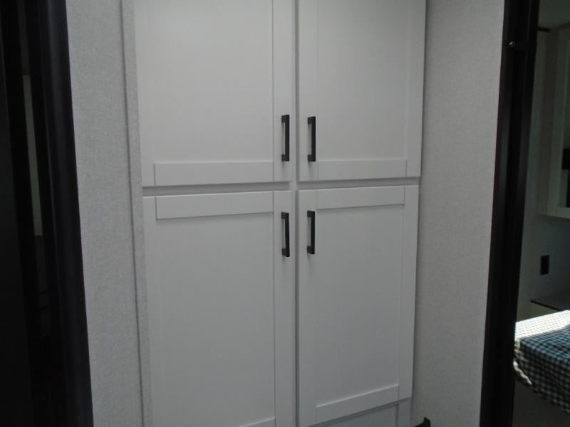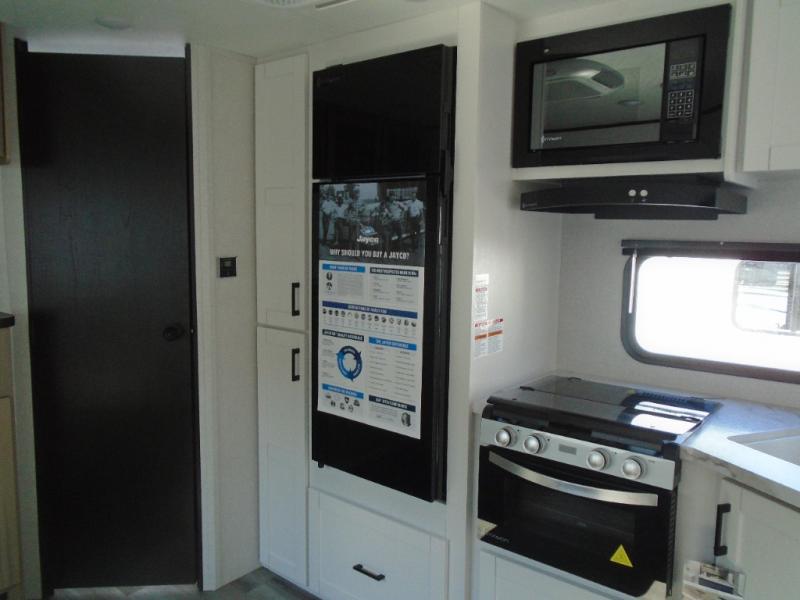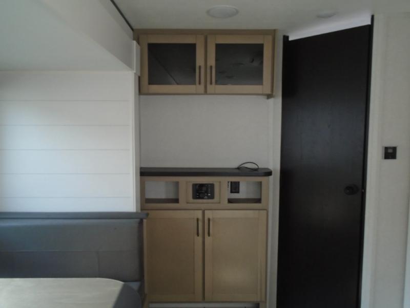 You can comfortably sleep up to six people in this trailer thanks to the RV queen bed in the front bedroom, plus the booth dinette and jack-knife sofa in the main living area! The chef of your crew will have a three burner cooktop and microwave oven to prepare meals, and everyone can store their favorite drinks in the 8 cu. ft. 12V refrigerator. The walk-through bath is spacious and includes a radius shower, toilet, a sink, and linen closet and is the full width of the unit. The outside storage will let you bring along camp chairs and games, fishing poles and more, plus the 18' 3" power awning with LED lights will create a nice place to gather in the evenings!