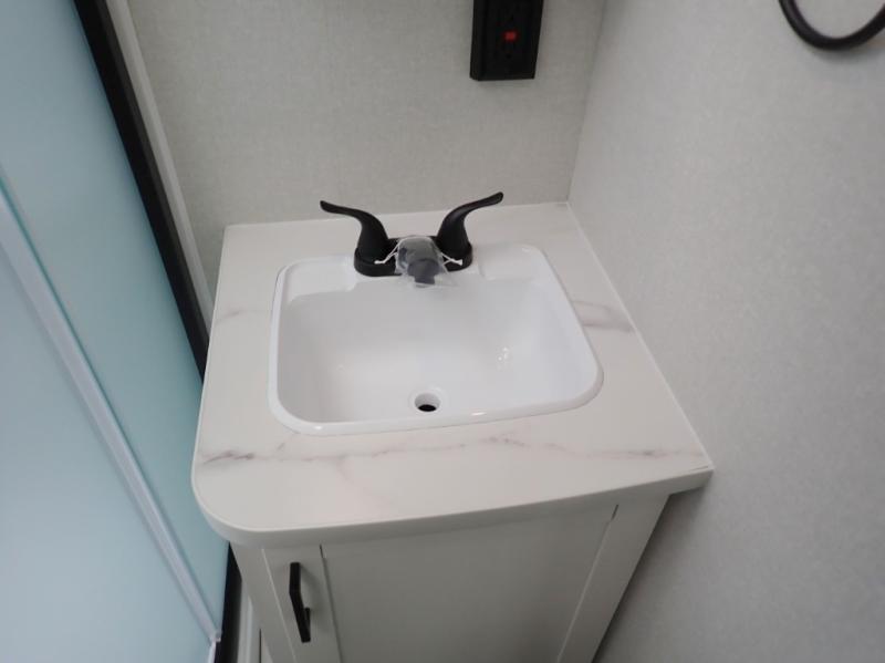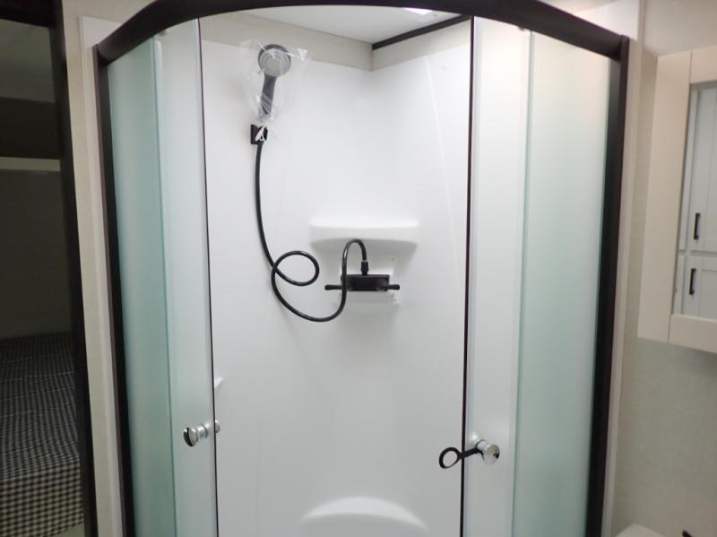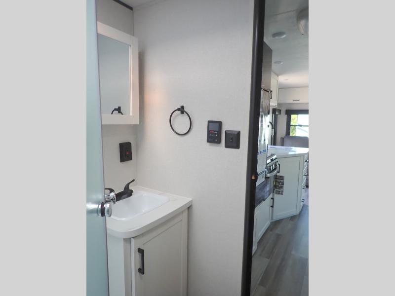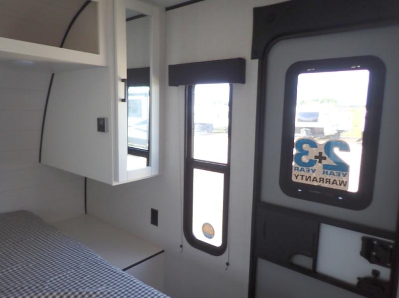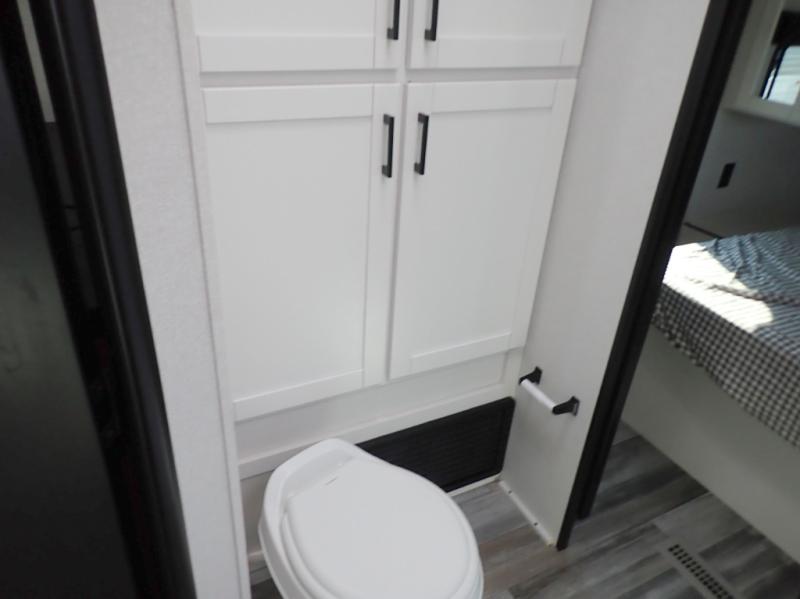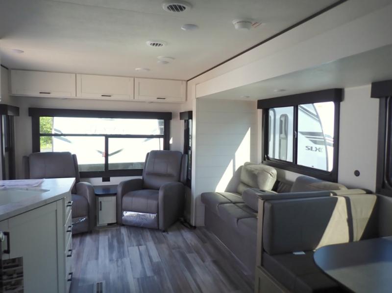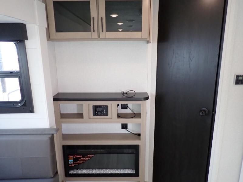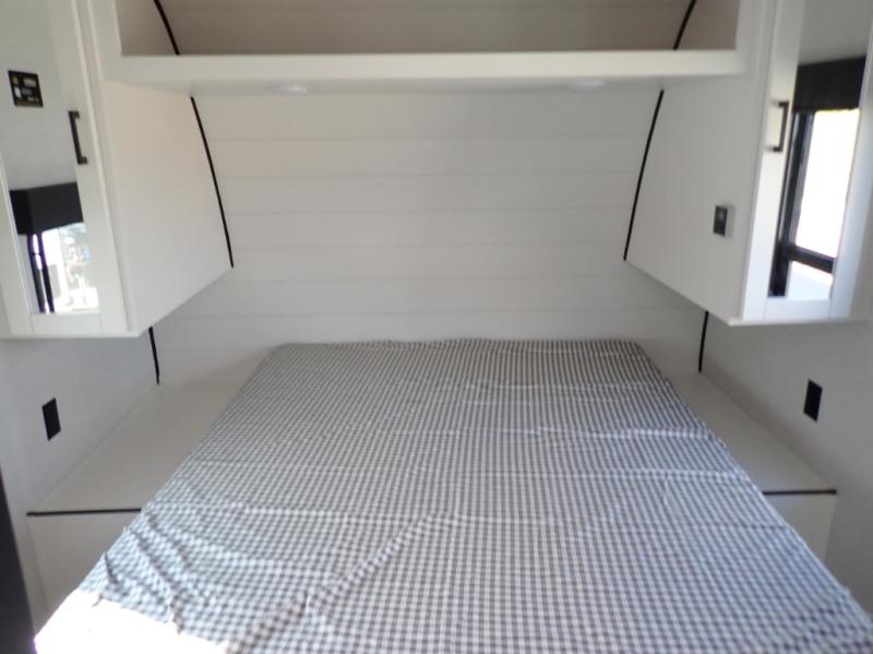 You can comfortably sleep up to six people in this trailer thanks to the RV queen bed in the front bedroom, plus the booth dinette and jack-knife sofa in the main living area! The chef of your crew will have a three burner cooktop and microwave oven to prepare meals, and everyone can store their favorite drinks in the 8 cu. ft. 12V refrigerator. The walk-through bath is spacious and includes a radius shower, toilet, a sink, and linen closet and is the full width of the unit. The outside storage will let you bring along camp chairs and games, fishing poles and more, plus the 18' 3" power awning with LED lights will create a nice place to gather in the evenings!