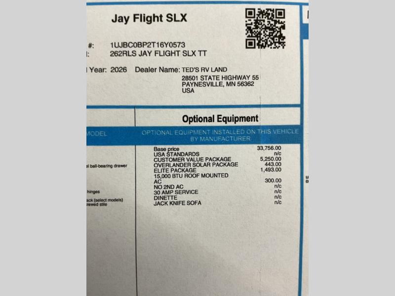 New 2026 Jayco Jay Flight SLX 262RLS Travel Trailer
