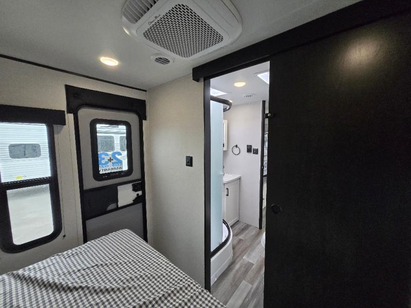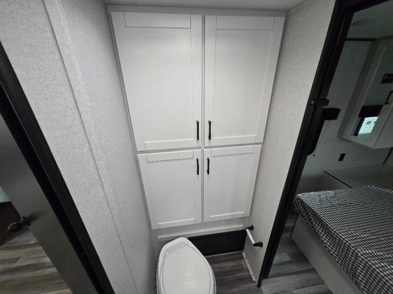 You can comfortably sleep up to six people in this trailer thanks to the RV queen bed in the front bedroom, plus the booth dinette and jack-knife sofa in the main living area! The chef of your crew will have a three burner cooktop and microwave oven to prepare meals, and everyone can store their favorite drinks in the 8 cu. ft. 12V refrigerator. The walk-through bath is spacious and includes a radius shower, toilet, a sink, and linen closet and is the full width of the unit. The outside storage will let you bring along camp chairs and games, fishing poles and more, plus the 18' 3" power awning with LED lights will create a nice place to gather in the evenings!