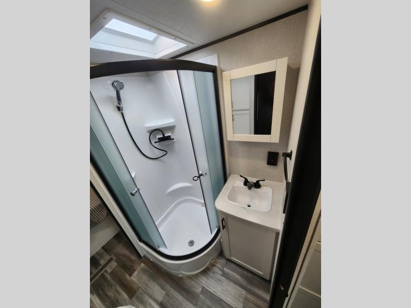 UNIT INLCUDES: CUSTOMER VALUE PACAKGE, OVERLANDER SOLAR PACKAGE, 15K BTU ROOF MOUNTED AC, NO 2ND AC, 30AMP SERVICE, BLACK SPOKE RIMS, DINETTE, TRI-FOLD SOFA