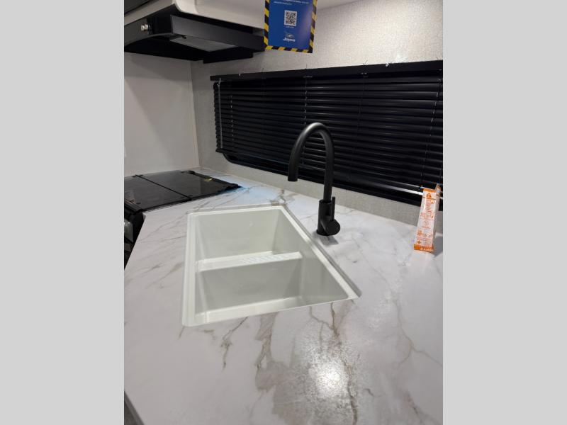 The Jayco Jay Flight SLX travel trailer is quite easy to own because it is lightweight for an easier towing experience. Built on a fully integrated A-frame with galvanized-steel, impact-resistant wheel wells, the Jay Flight SLX has quality at its very foundation. That quality continues on to the electric self-adjusting brakes, easy-lube hubs, Magnum Truss roof system, and LP quick connect. Some of what the mandatory Customer Value Package includes is backup camera prep, Keyed-Alike entry and baggage doors, and an on-demand tankless water heater.