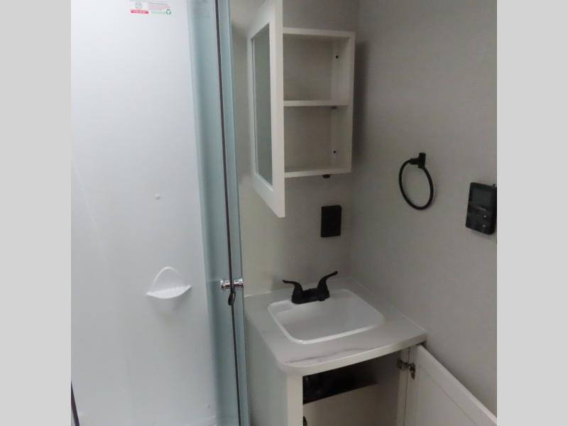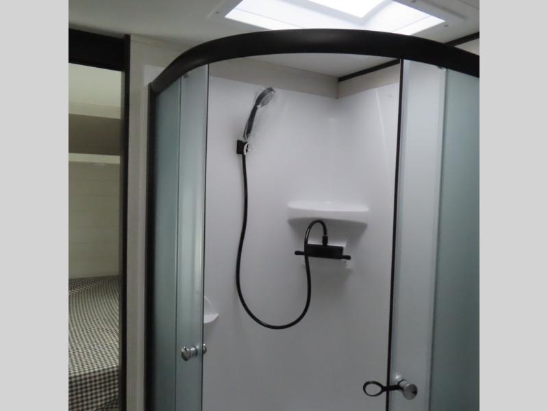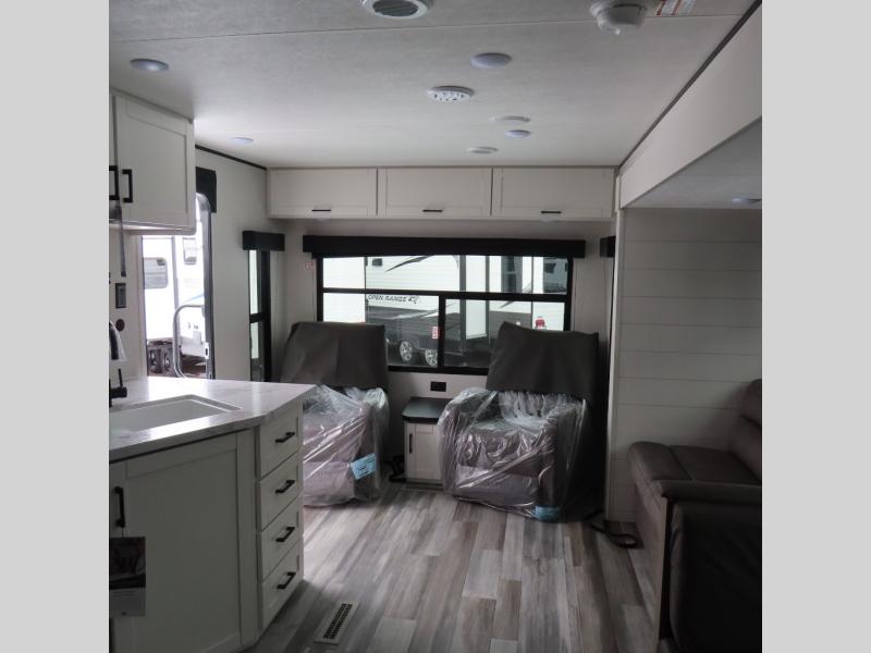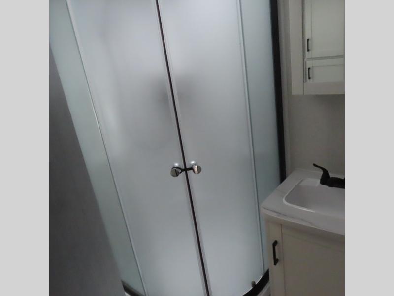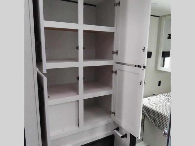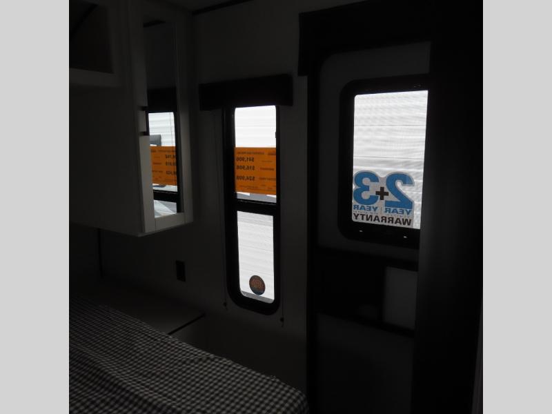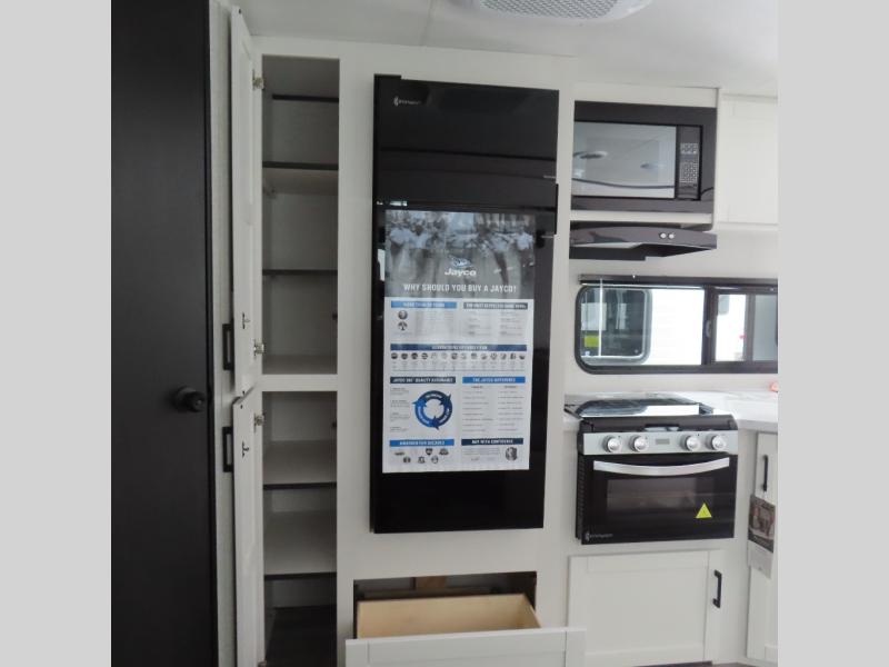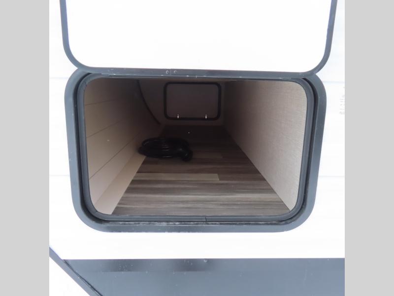 You can comfortably sleep up to six people in this trailer thanks to the RV queen bed in the front bedroom, plus the booth dinette and jack-knife sofa in the main living area! The chef of your crew will have a three burner cooktop and microwave oven to prepare meals, and everyone can store their favorite drinks in the 8 cu. ft. 12V refrigerator. The walk-through bath is spacious and includes a radius shower, toilet, a sink, and linen closet and is the full width of the unit. The outside storage will let you bring along camp chairs and games, fishing poles and more, plus the 18' 3" power awning with LED lights will create a nice place to gather in the evenings!