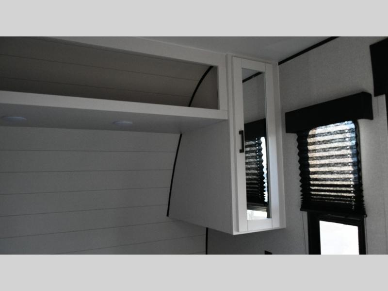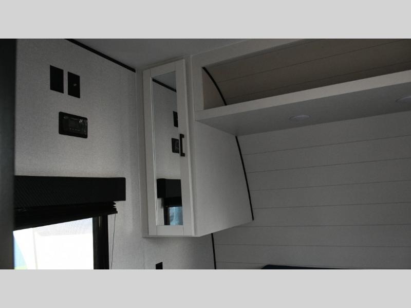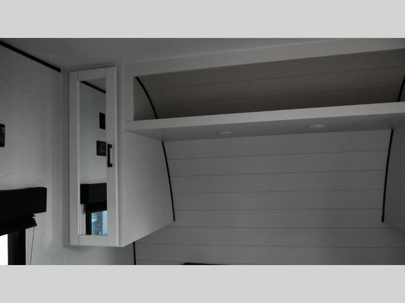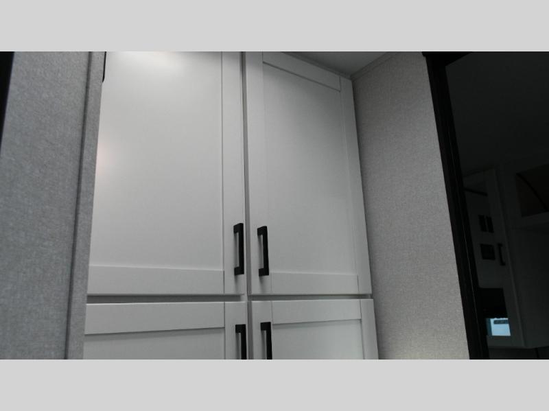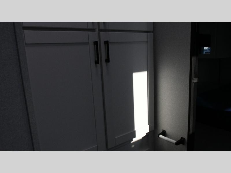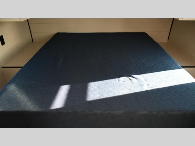 Private Front Bedroom – Retreat to your own RV queen bed with dual wardrobes and overhead storage.