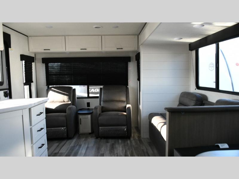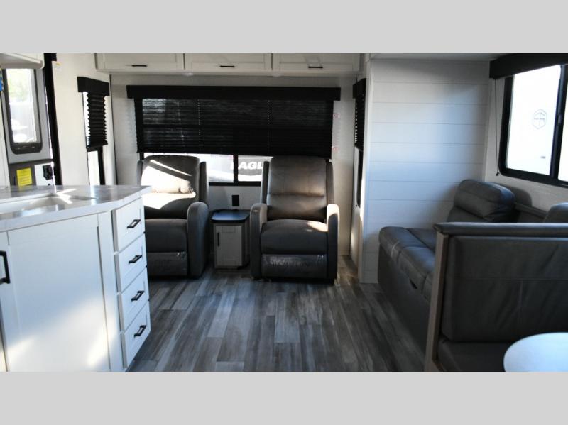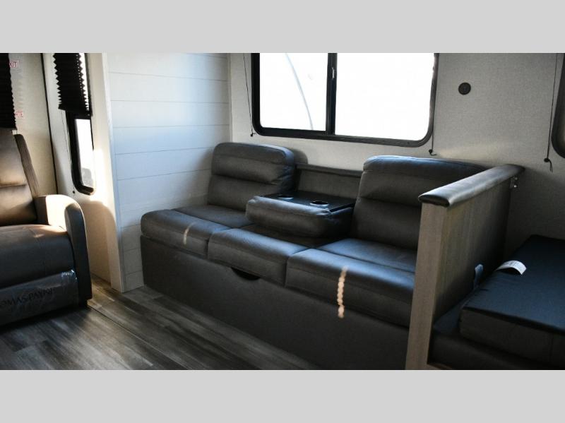 Rear Living Area – Stretch out on the jack-knife sofa and booth dinette, both of which double as sleeping spots for family or guests.