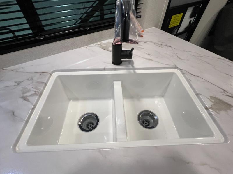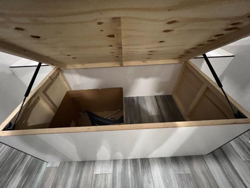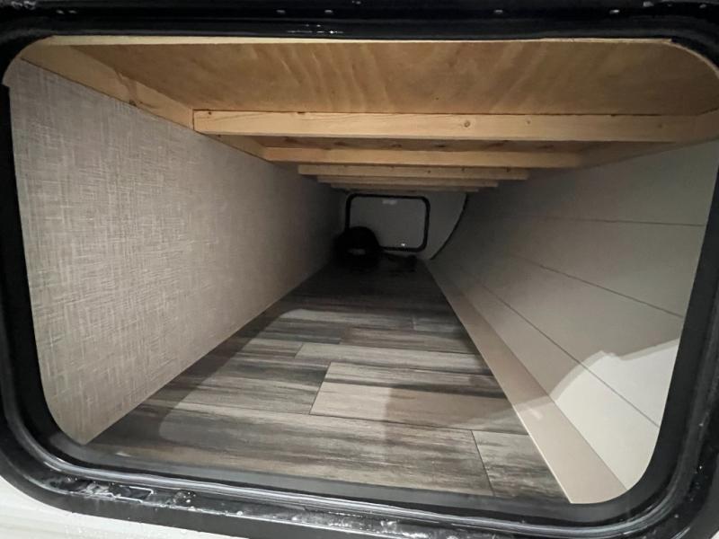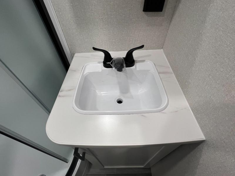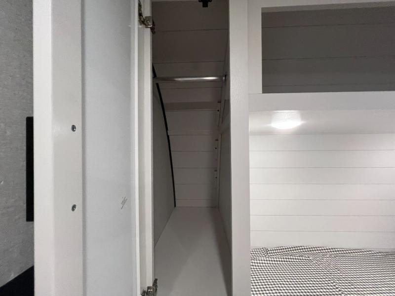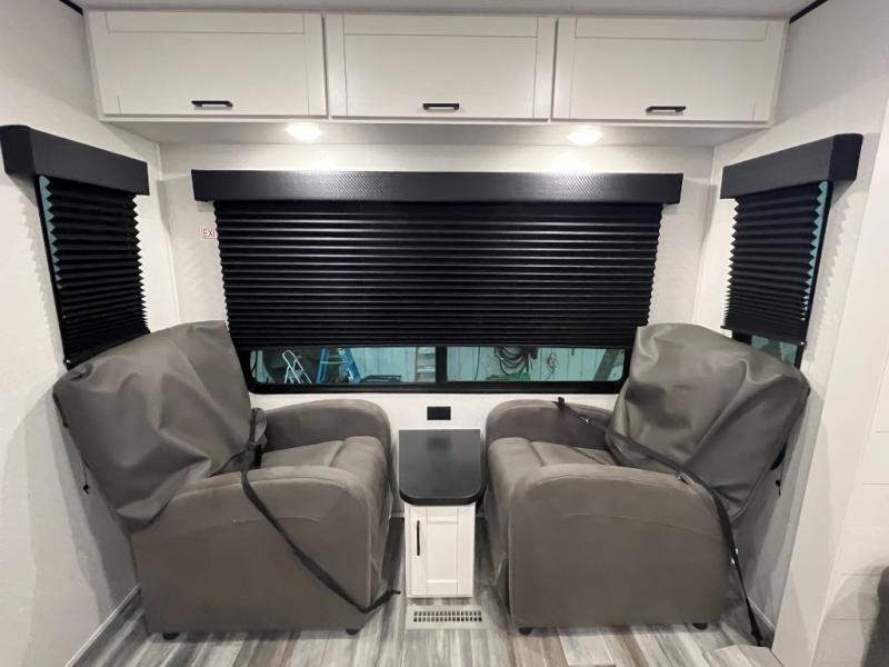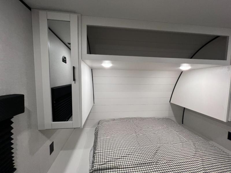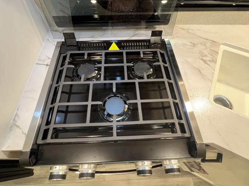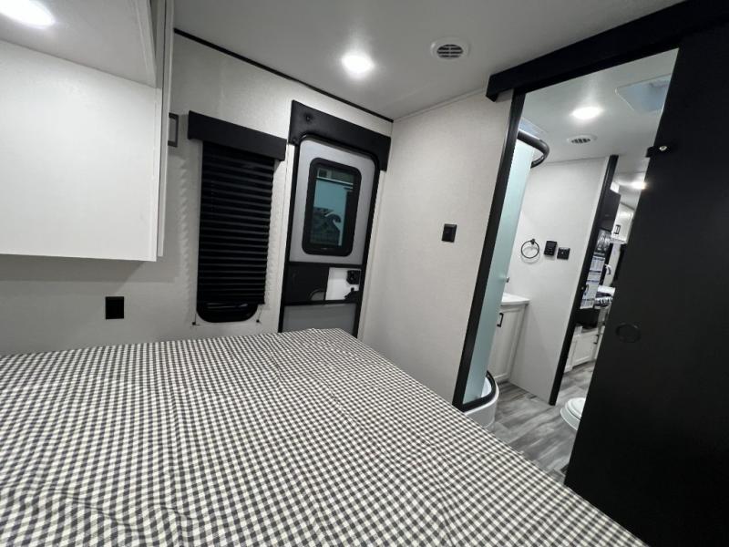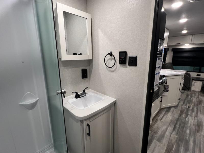 You can comfortably sleep up to six people in this trailer thanks to the RV queen bed in the front bedroom, plus the booth dinette and jack-knife sofa in the main living area! The chef of your crew will have a three burner cooktop and microwave oven to prepare meals, and everyone can store their favorite drinks in the 8 cu. ft. 12V refrigerator. The walk-through bath is spacious and includes a radius shower, toilet, a sink, and linen closet and is the full width of the unit. The outside storage will let you bring along camp chairs and games, fishing poles and more, plus the 18' power awning with LED lights will create a nice place to gather in the evenings!