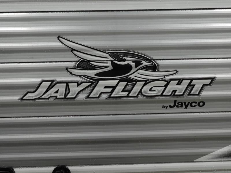 The Jayco Jay Flight SLX travel trailer is quite easy to own because it is lightweight for an easier towing experience. Built on a fully integrated A-frame with galvanized-steel, impact-resistant wheel wells, the Jay Flight SLX has quality at its very foundation. That quality continues on to the electric self-adjusting brakes, easy-lube hubs, Magnum Truss roof system, and LP quick connect. Some of what the mandatory Customer Value Package includes is backup camera prep, Keyed-Alike entry and baggage doors, marine grade exterior speakers, and an on-demand tankless water heater.
