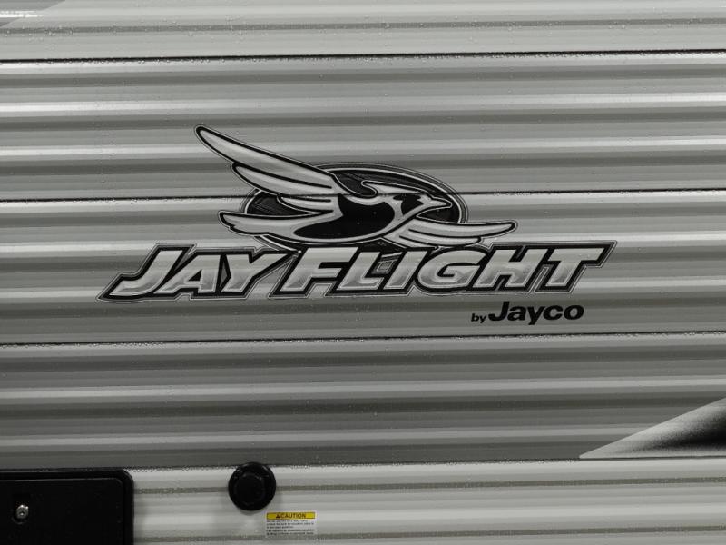 The Jayco Jay Flight SLX travel trailer is quite easy to own because it is lightweight for an easier towing experience. Built on a fully integrated A-frame with galvanized-steel, impact-resistant wheel wells, the Jay Flight SLX has quality at its very foundation. That quality continues on to the electric self-adjusting brakes, easy-lube hubs, Magnum Truss roof system, and LP quick connect. Some of what the mandatory Customer Value Package includes is backup camera prep, Keyed-Alike entry and baggage doors, marine grade exterior speakers, and an on-demand tankless water heater.
