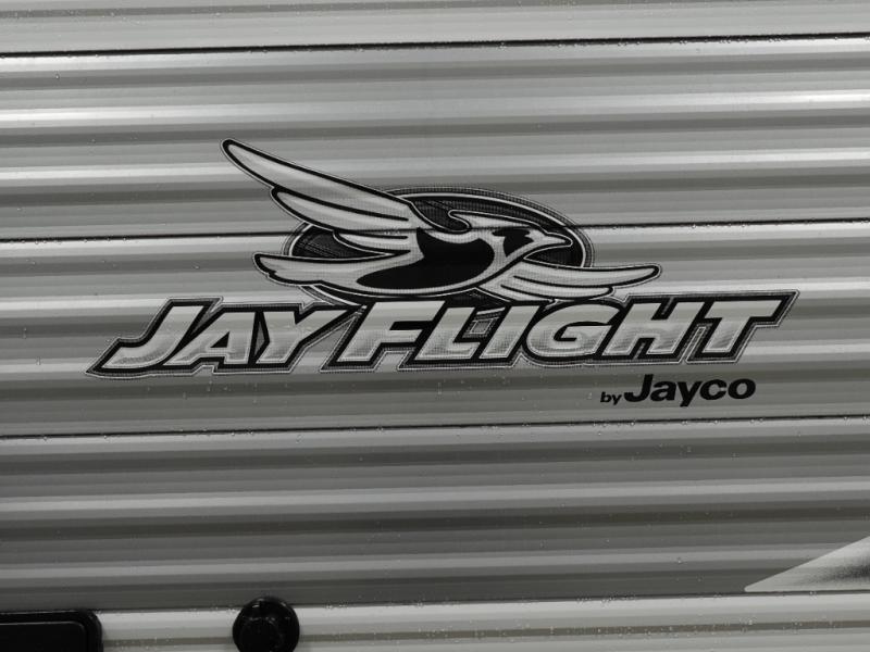 The Jayco Jay Flight SLX travel trailer is quite easy to own because it is lightweight for an easier towing experience. Built on a fully integrated A-frame with galvanized-steel, impact-resistant wheel wells, the Jay Flight SLX has quality at its very foundation. That quality continues on to the electric self-adjusting brakes, easy-lube hubs, Magnum Truss roof system, and LP quick connect. Some of what the mandatory Customer Value Package includes is backup camera prep, Keyed-Alike entry and baggage doors, marine grade exterior speakers, and an on-demand tankless water heater.