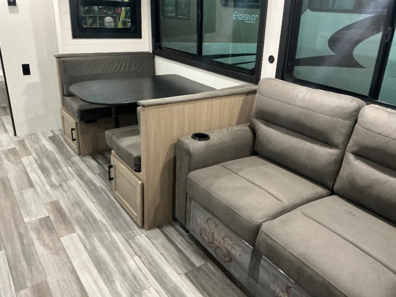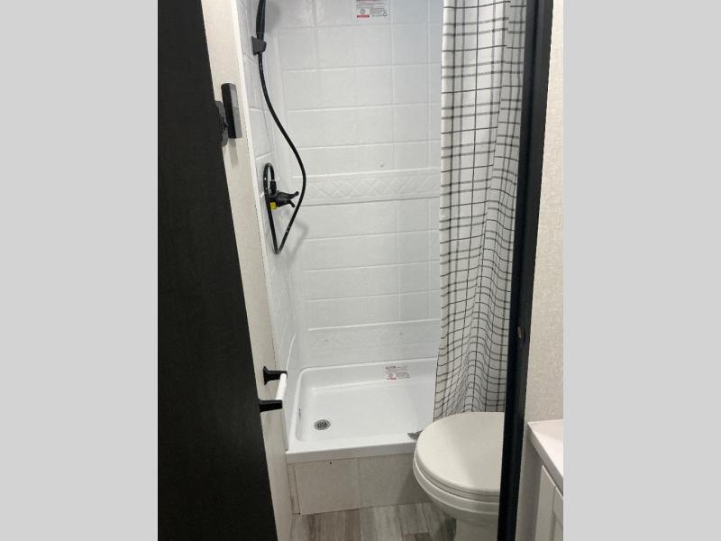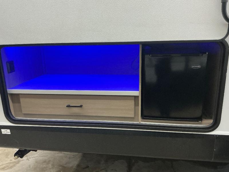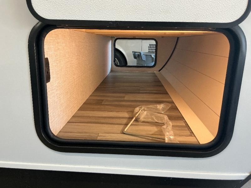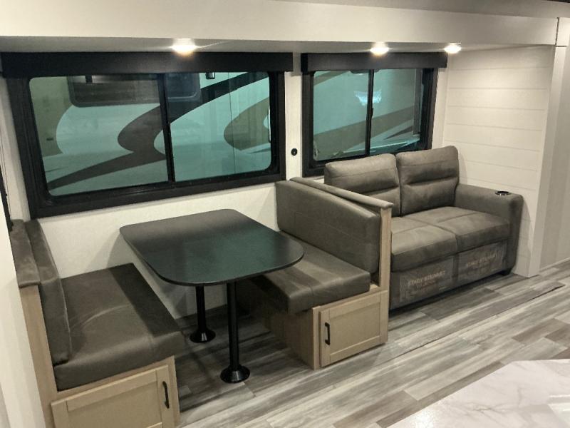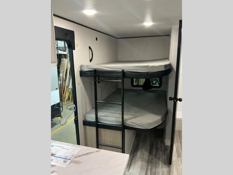 If space is what you're looking for in your next trailer, space is what you'll get this this Jay Flight SLX! The large slide houses the jack-knife sofa and booth dinette, and the added space here will provide everyone room to move about. The chef of your group will love cooking inside, or they can head outside to cook on the outdoor kitchen. Double-size bunks are sure to be a big hit with the little ones, and you'll love having your own space up front in the private bedroom. This unit includes ample storage space, including a hidden pantry with shelves, a bedroom closet plus dual bedside wardrobes, plus exterior storage for hiking or fishing gear!