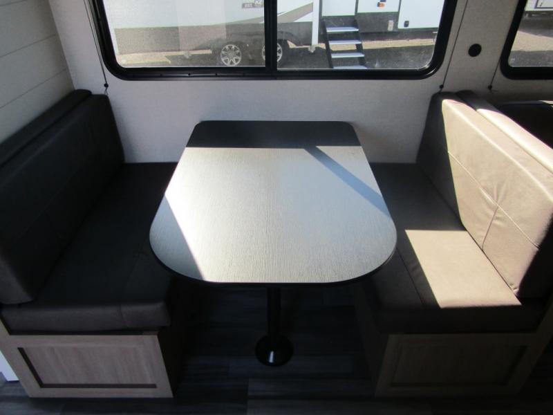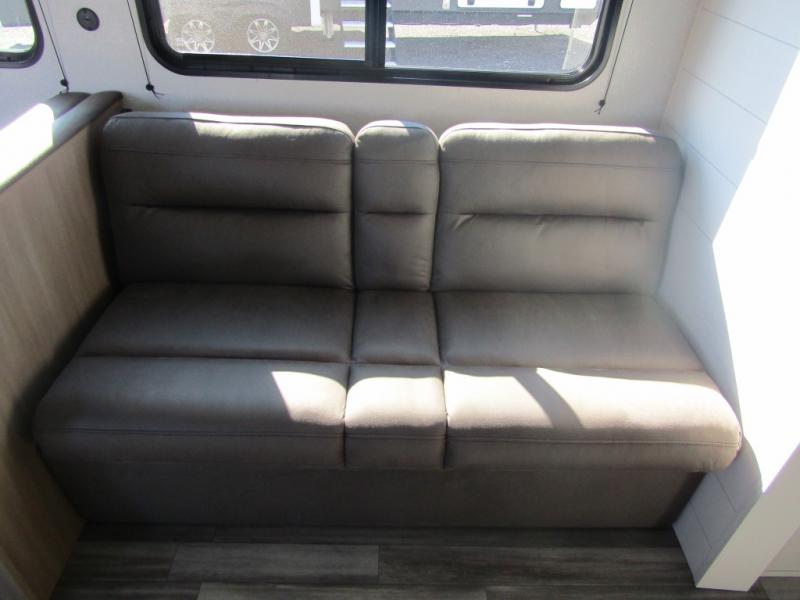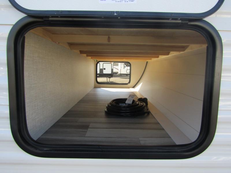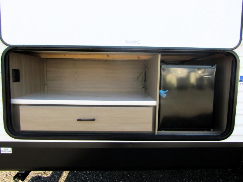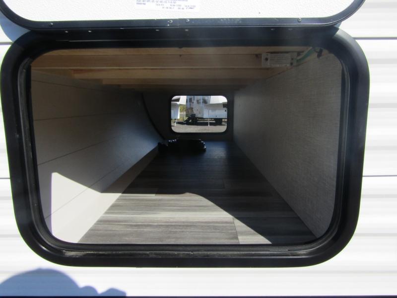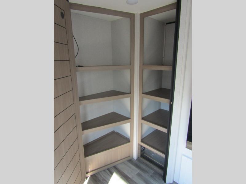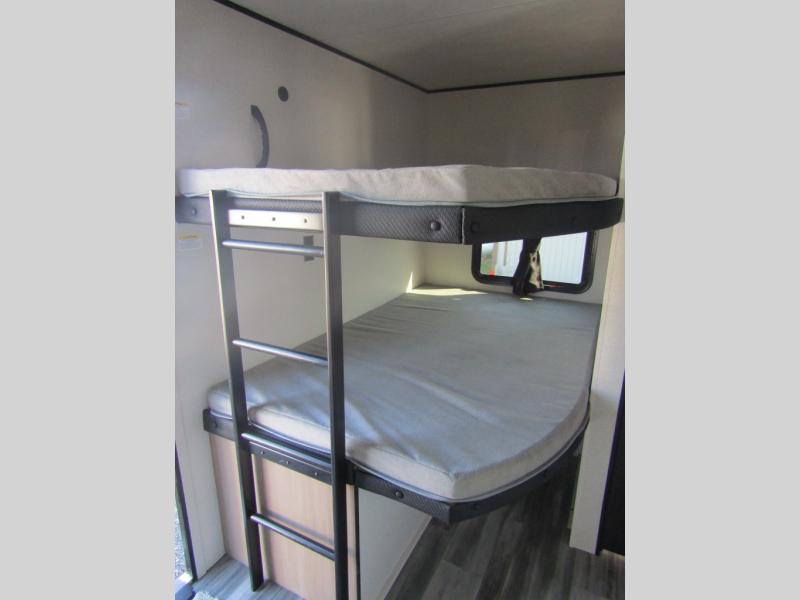 If space is what you're looking for in your next trailer, space is what you'll get this this Jay Flight SLX! The large slide houses the jack-knife sofa and booth dinette, and the added space here will provide everyone room to move about. The chef of your group will love cooking inside, or they can head outside to cook on the outdoor kitchen. Double-size bunks are sure to be a big hit with the little ones, and you'll love having your own space up front in the private bedroom. This unit includes ample storage space, including a hidden pantry with shelves, a bedroom closet plus dual bedside wardrobes, plus exterior storage for hiking or fishing gear!