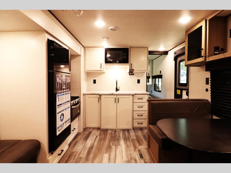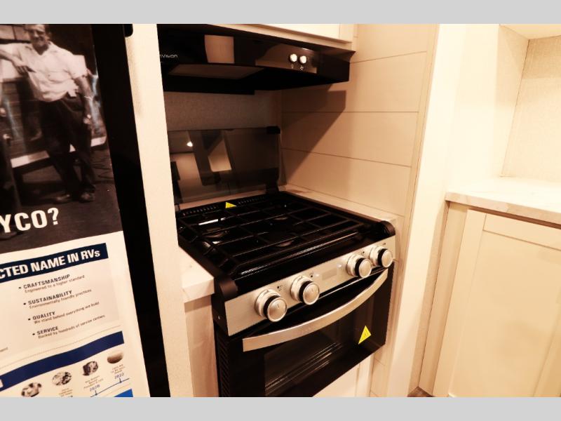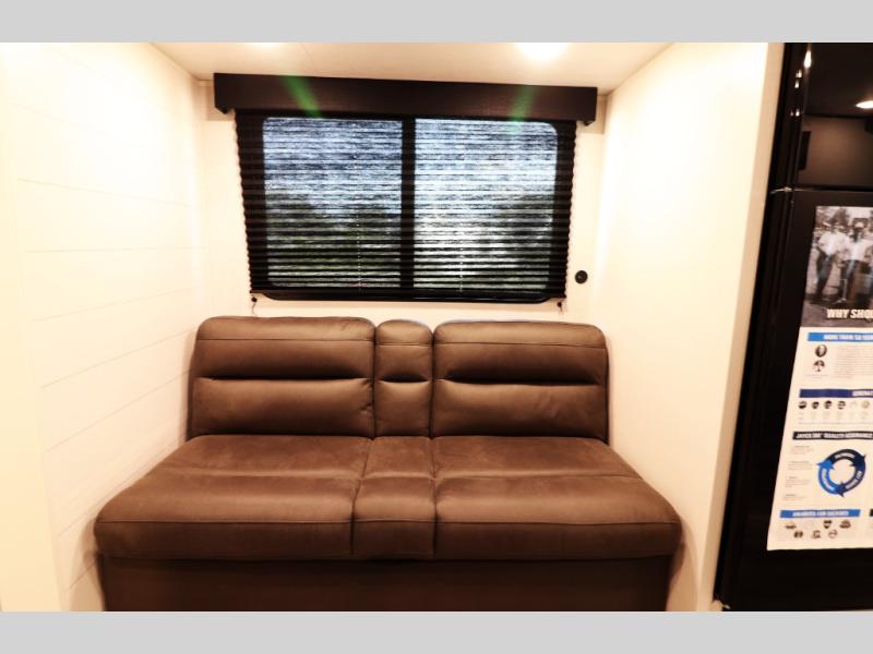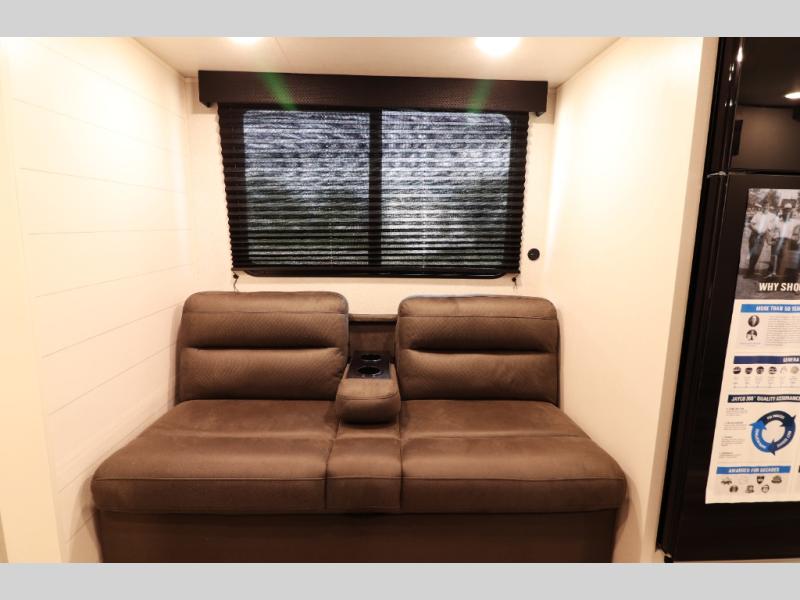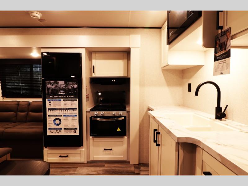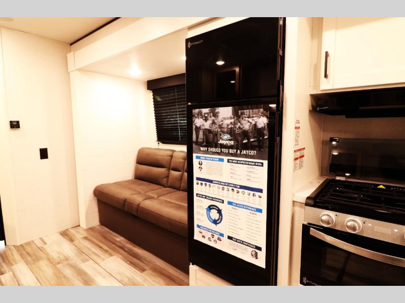 While Jayco doesn’t list built-in Wi-Fi tech, the model comes prepped for digital TV antenna and exterior cable hook-up. You can easily install a portable hotspot or Wi-Fi booster for campsite connectivity.