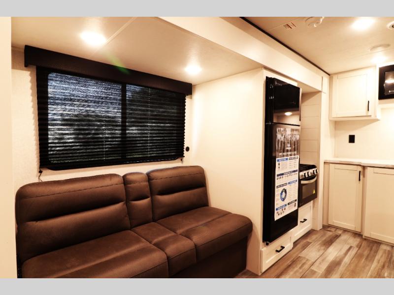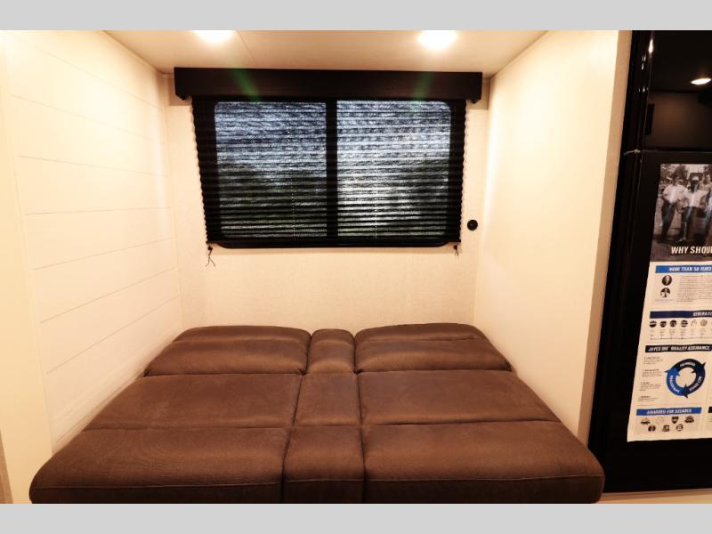 Perfect for first-time buyers, couples & families: The spacious layout includes a private front queen bedroom, double-size rear bunk beds, jack-knife sofa, and a booth dinette—sleeping up to 8 comfortably. It’s ideal for flexibility and family fun.