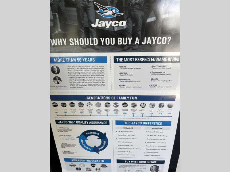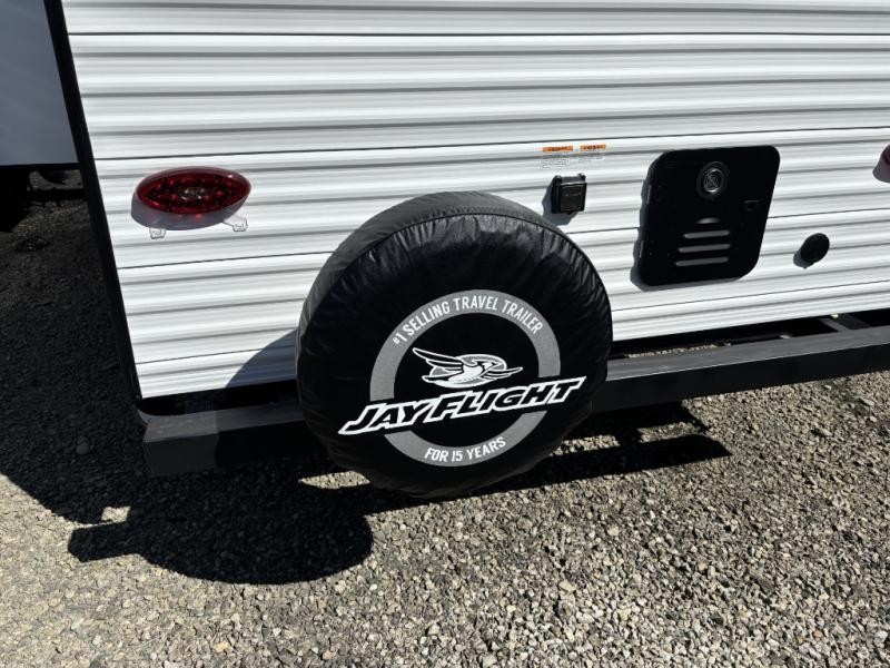 The Jayco Jay Flight SLX travel trailer is quite easy to own because it is lightweight for an easier towing experience. Built on a fully integrated A-frame with galvanized-steel, impact-resistant wheel wells, the Jay Flight SLX has quality at its very foundation. That quality continues on to the electric self-adjusting brakes, easy-lube hubs, Magnum Truss roof system, and LP quick connect. Some of what the mandatory Customer Value Package includes is backup camera prep, Keyed-Alike entry and baggage doors, and an on-demand tankless water heater.